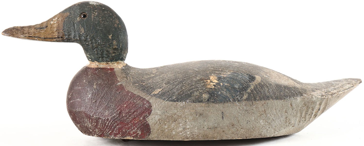 Mallard Drake by Benz Decoy Co., Jefferson City, MO, glass eyes, solid wood, original paint, structurally excellent. Grade: Very Good ++ - Value: 30 to 60