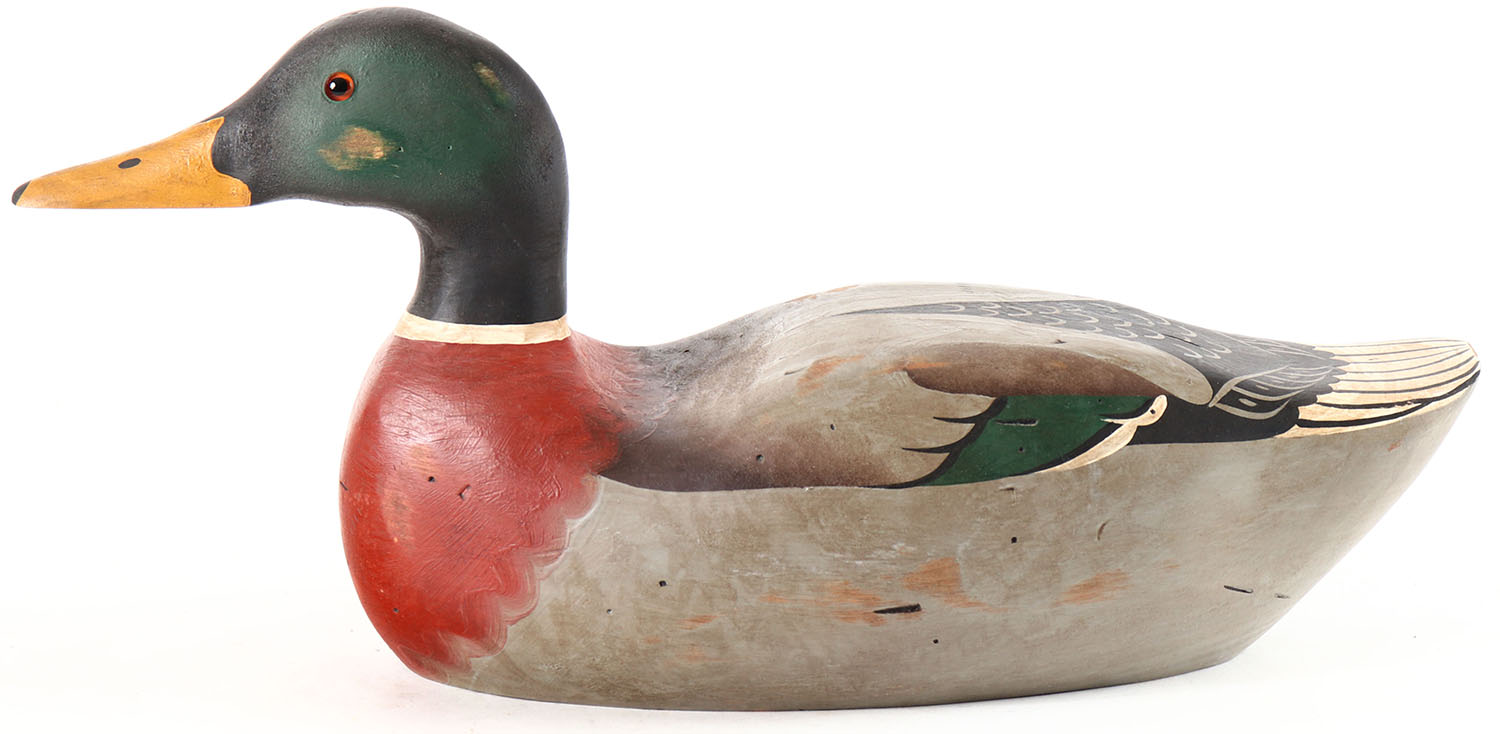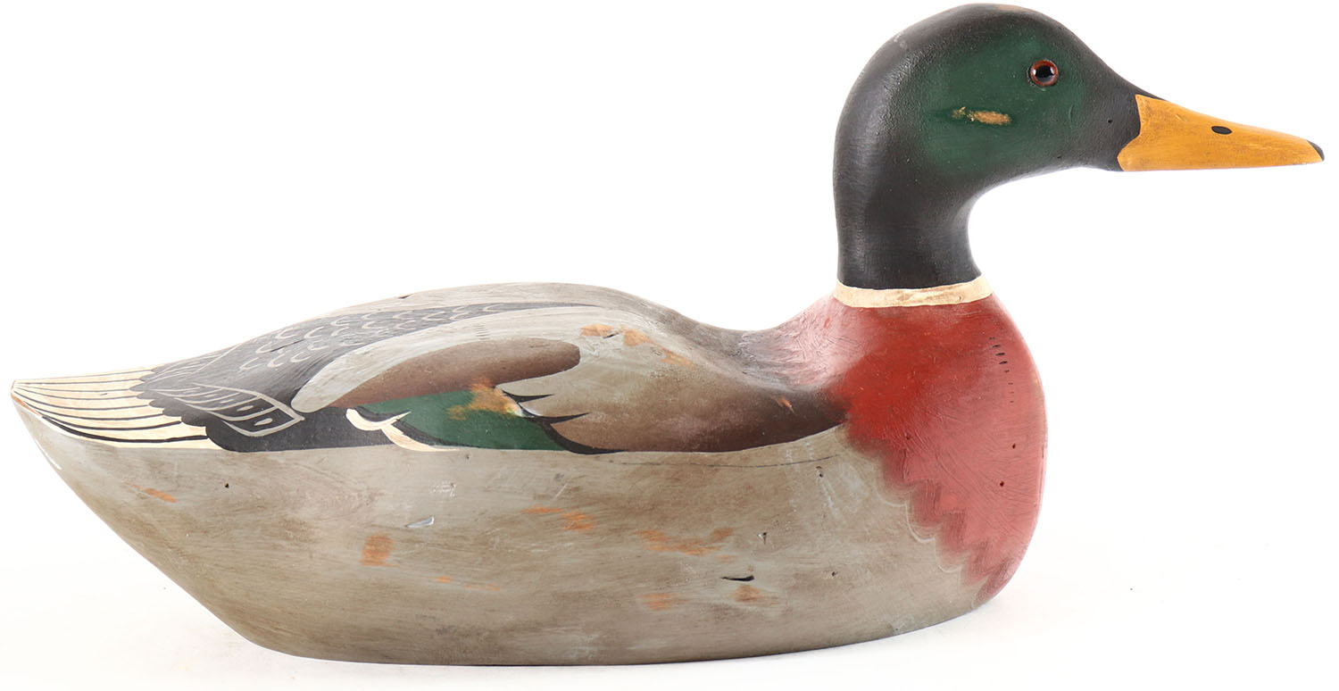 Mallard Drake by Lisa Byrd, glass eyes, solid wood, original paint, structurally excellent, signed on bottom by LISA BYRD. Grade: Excellent - Value: 20 to 40