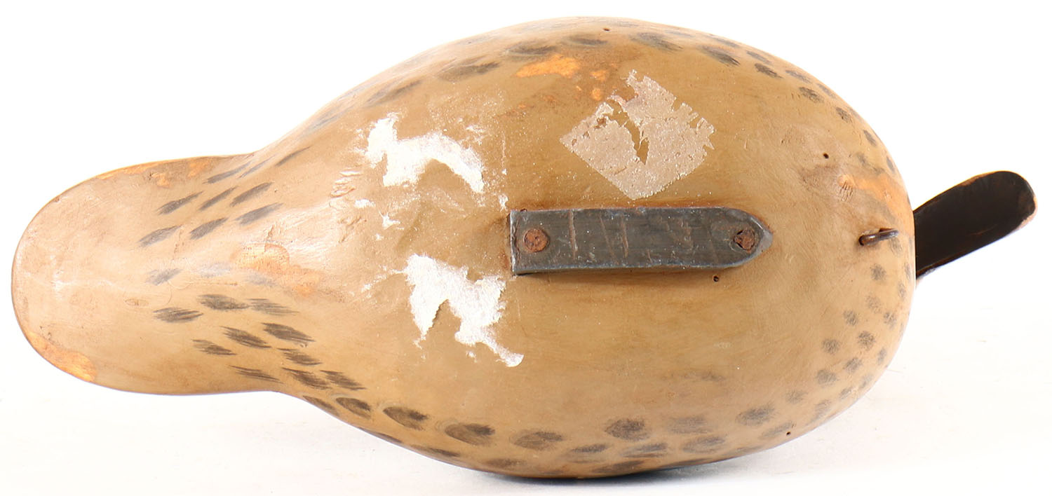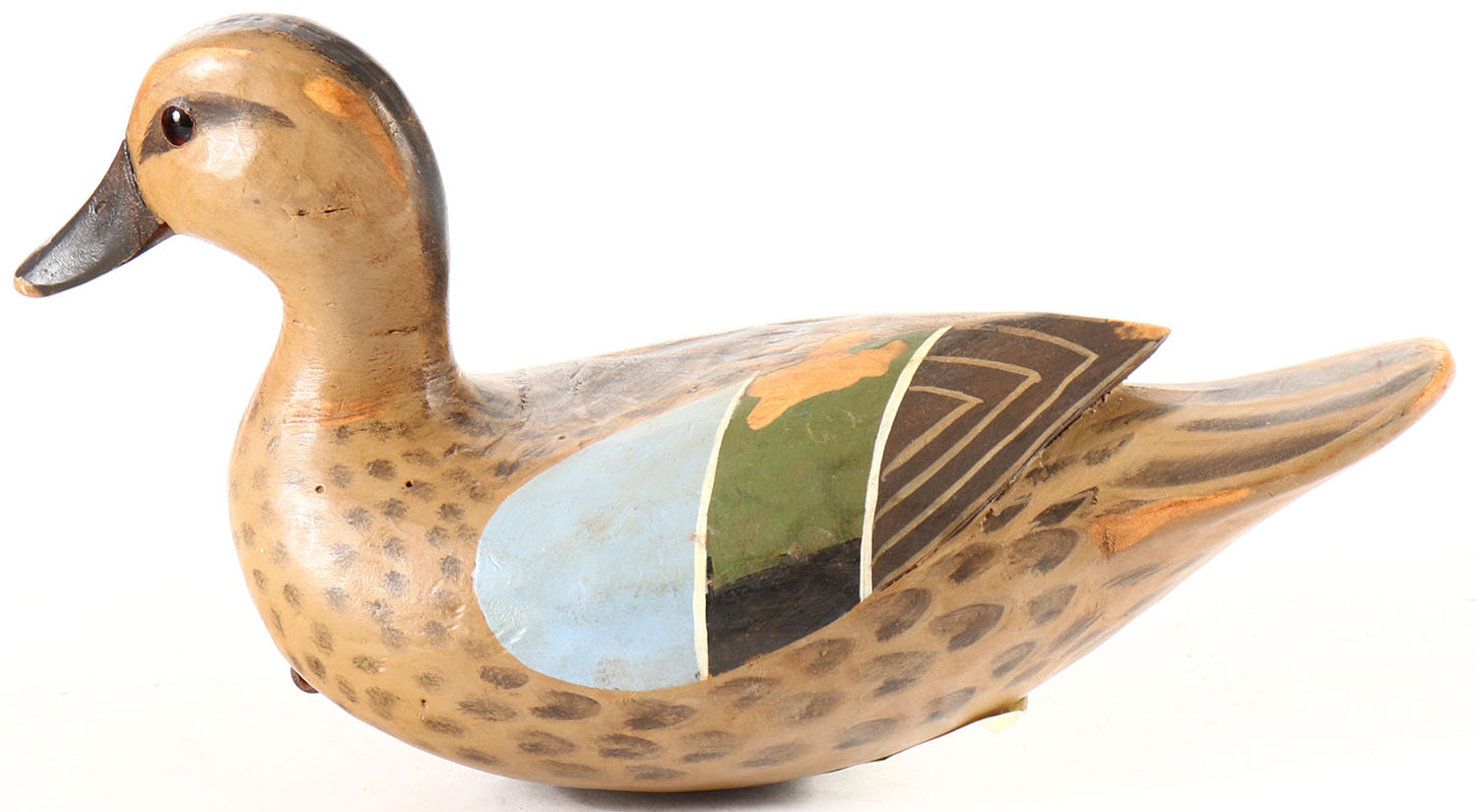 Blue Winged Teal Hen by unknown maker, glass eyes, hollow wood, original paint, structurally excellent. Grade: Excellent - Value: 16 to 30