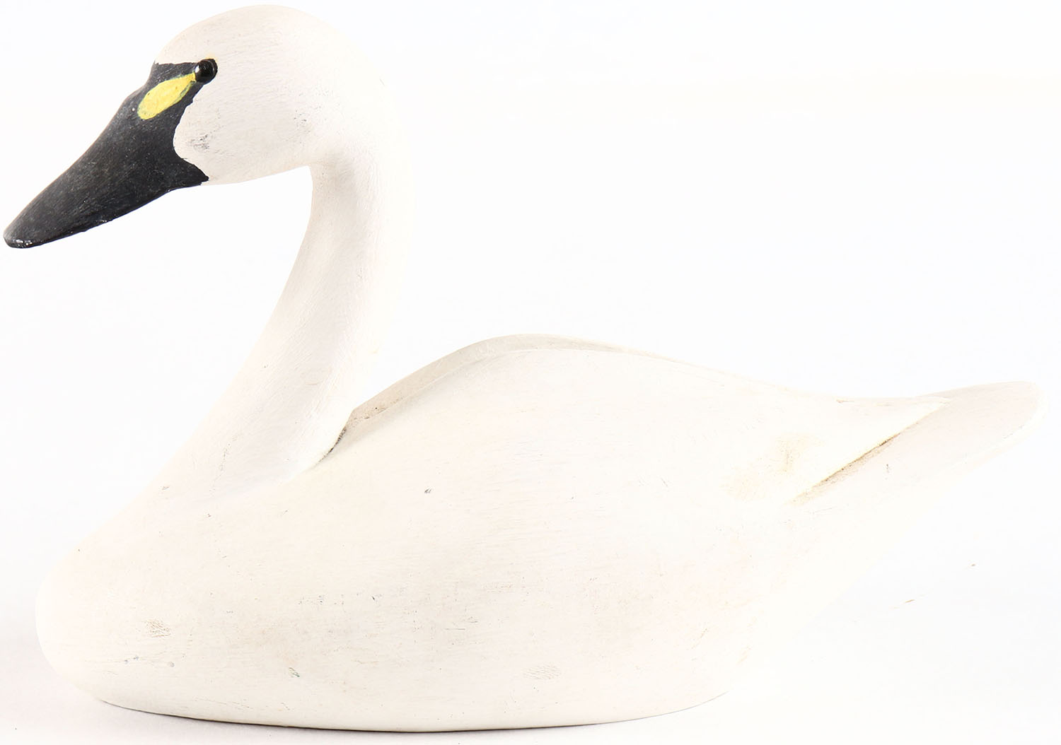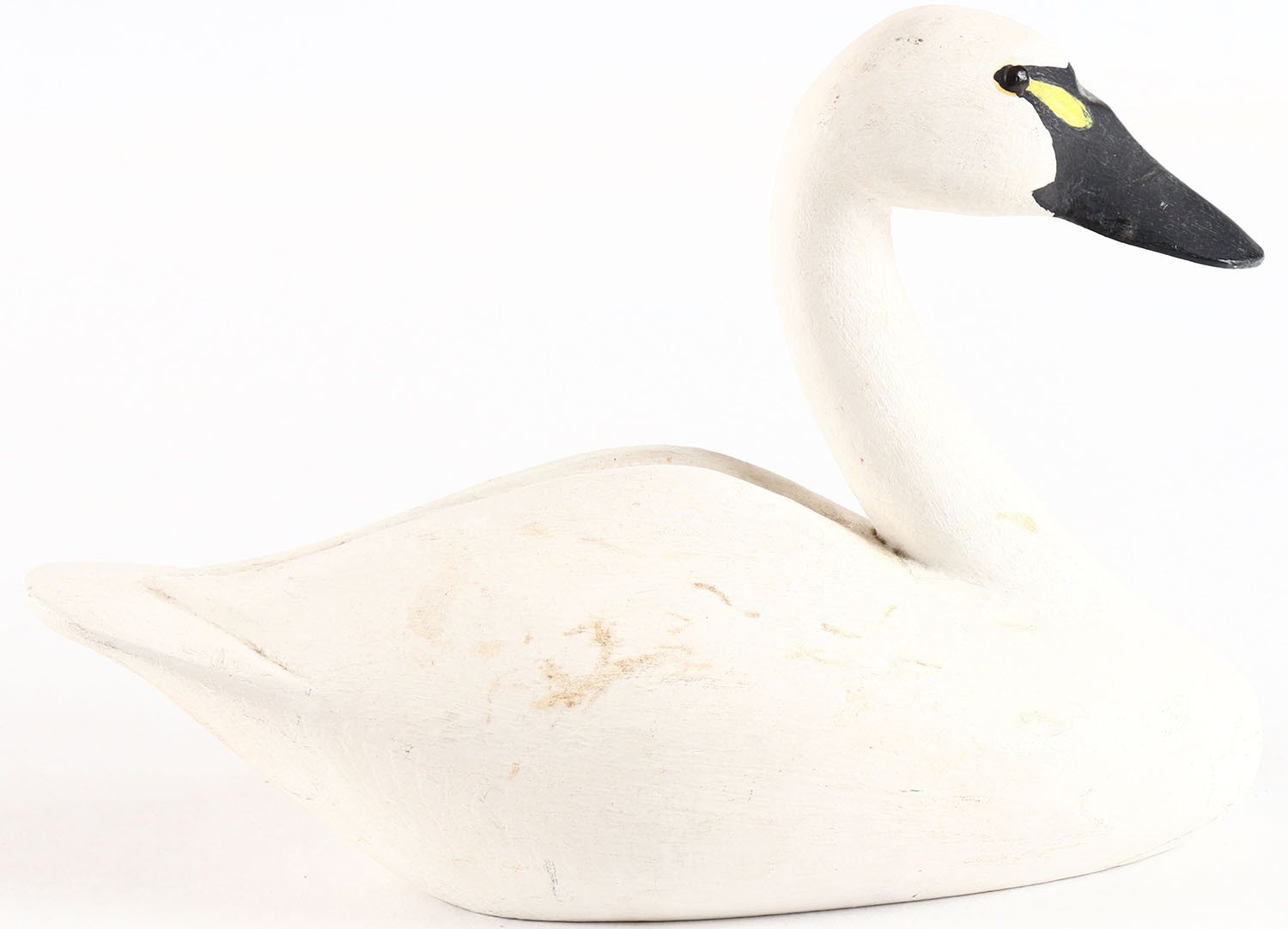 Swan by Marvin Highfield, glass eyes, solid wood, original paint, structurally excellent, signed on bottom. Grade: Excellent - Value: 2 to 60