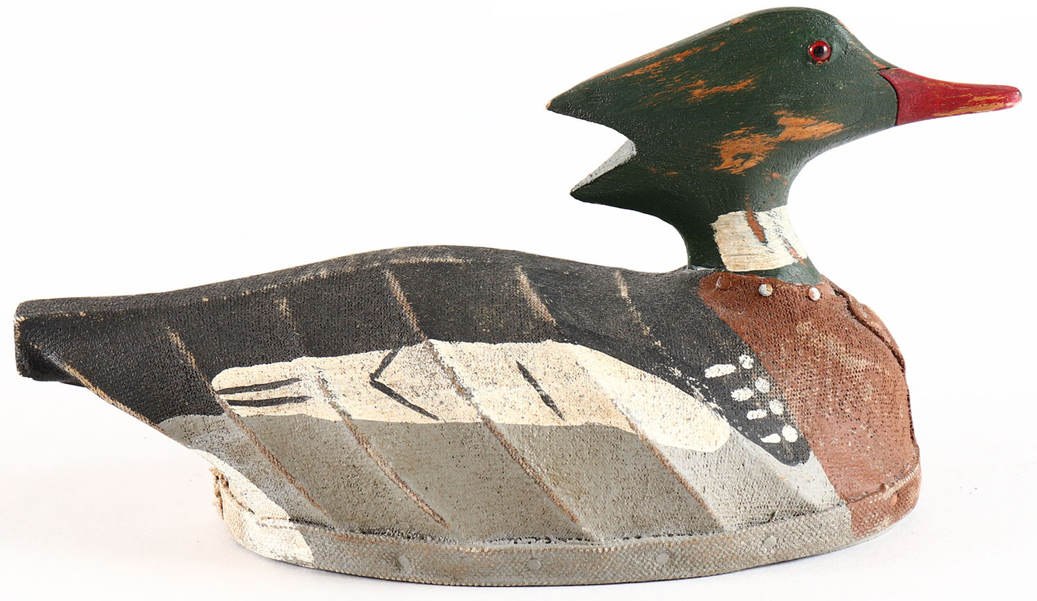 Small Red Breasted Merganser by unknown maker, glass eyes, solid wood, original paint, structurally excellent. Grade: Very Good ++ - Value: 10 to 50