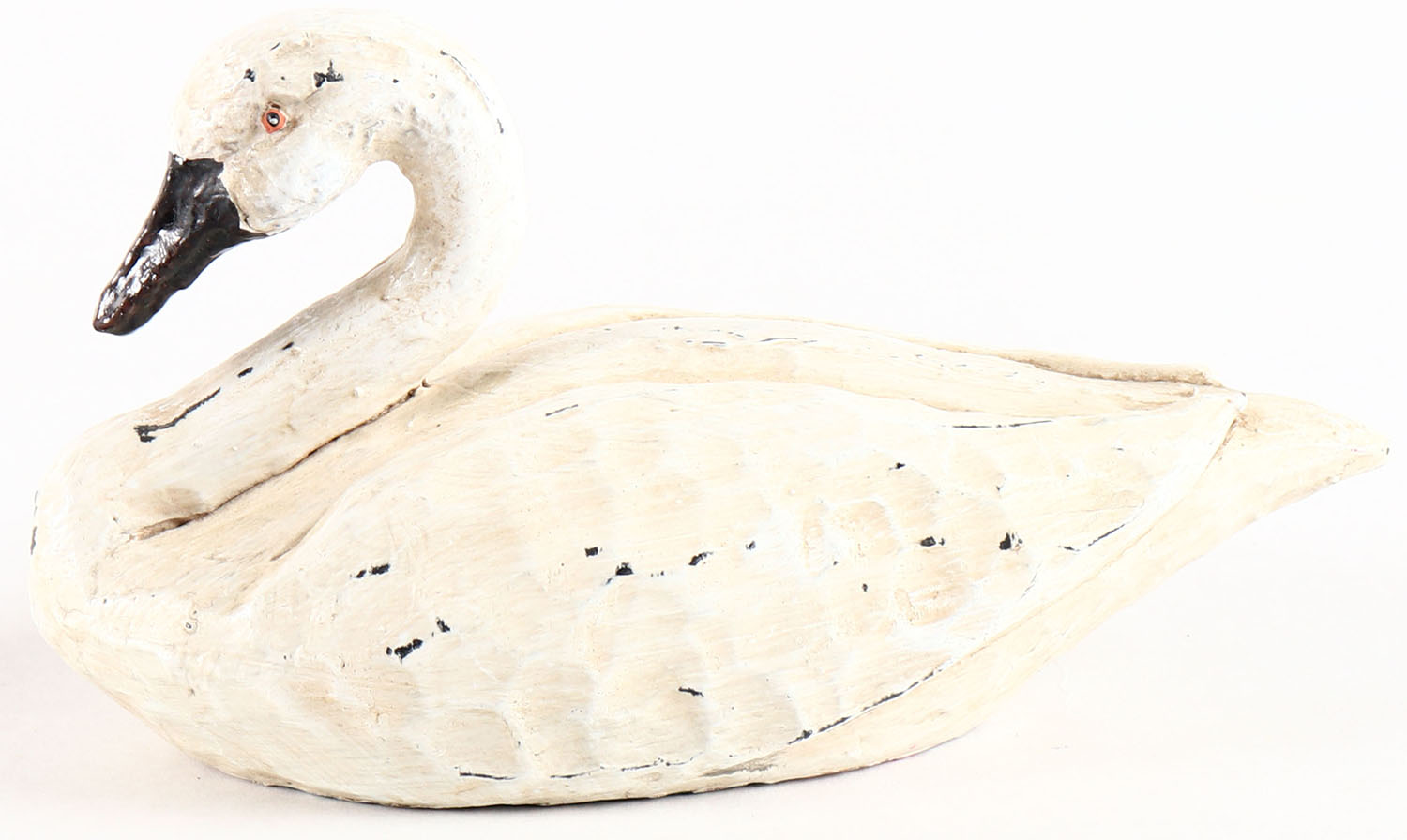 Miniature Swan by unknown maker, painted eyes, solid wood, original paint, structurally excellent. Grade: Very Good ++ - Value: 2 to 60