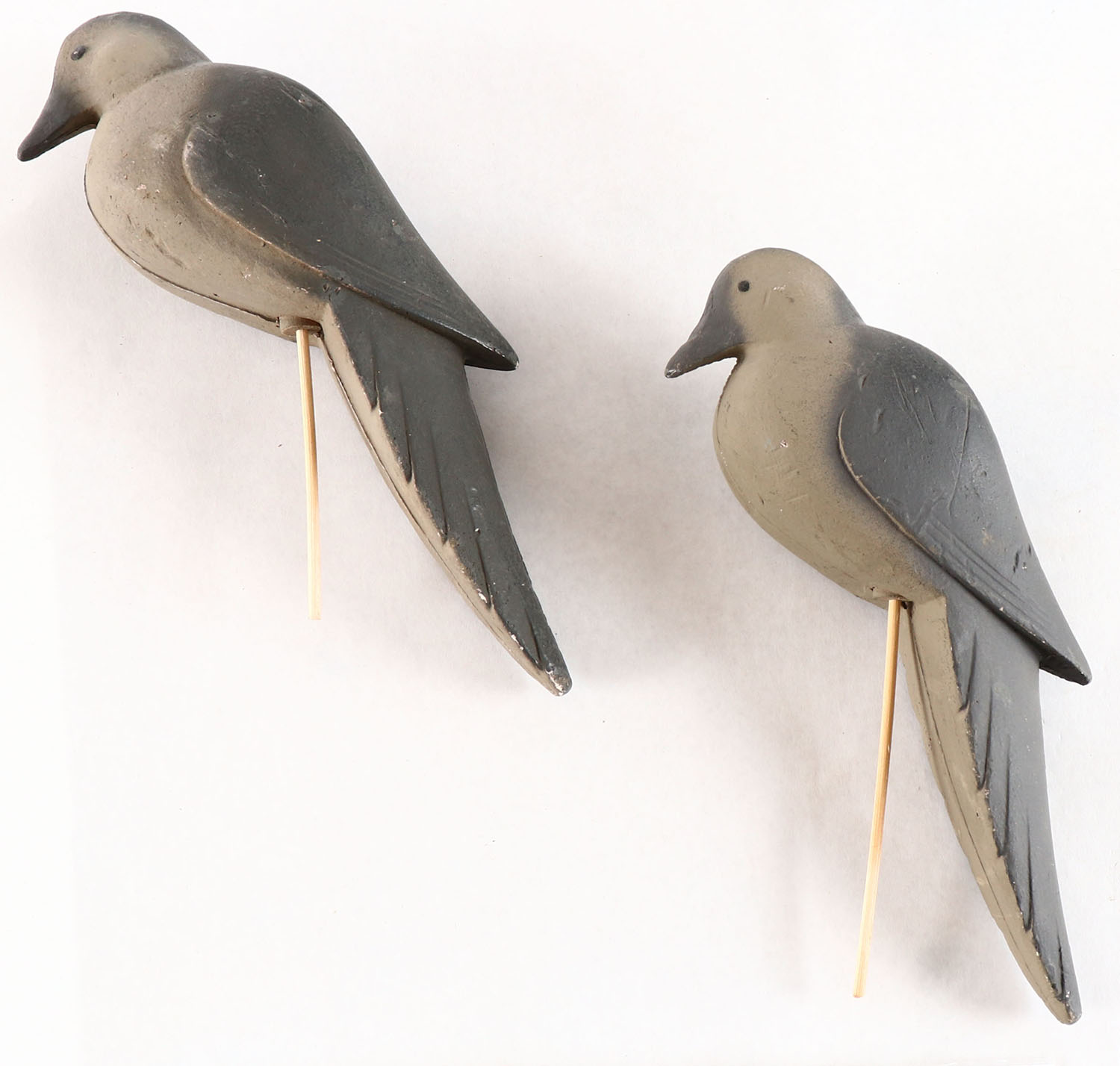 Lot of 2 Doves by unknown maker, painted eyes, paper mache', structurally excellent. Grade: Very Good ++ - Value: 6 to 30
