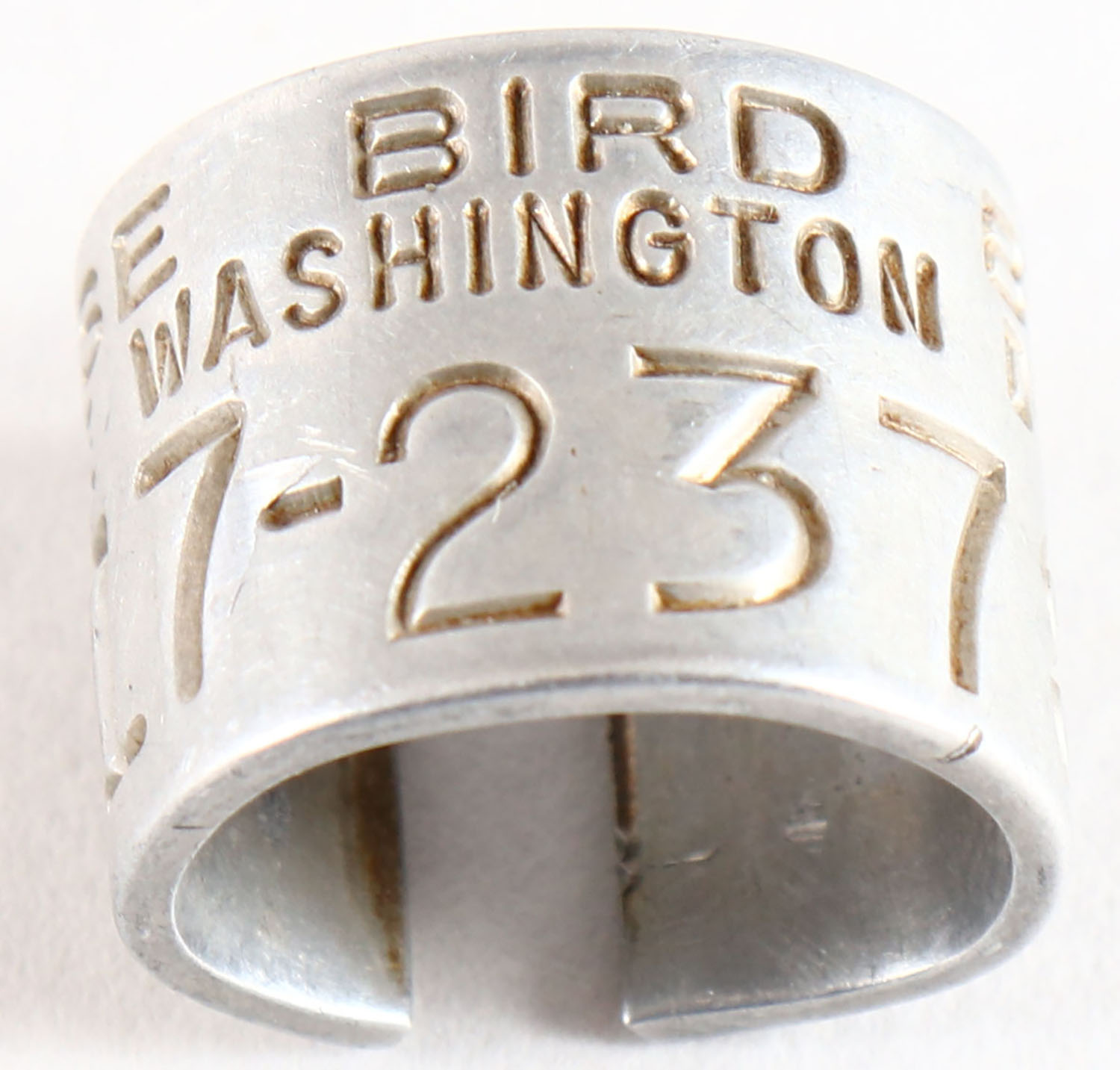 DUCK BAND with certificate from 1997 we are offering a few duck bands that were all shot at one duck club in Peoria IL from 1964 - 1999, ''MALLARD FARMS R R 2'', this one has a certificate, this one was banded NEAR Barlow KY 01/27/1997 and shot 11/19/98. Grade: Excellent - Value: 30 to 100