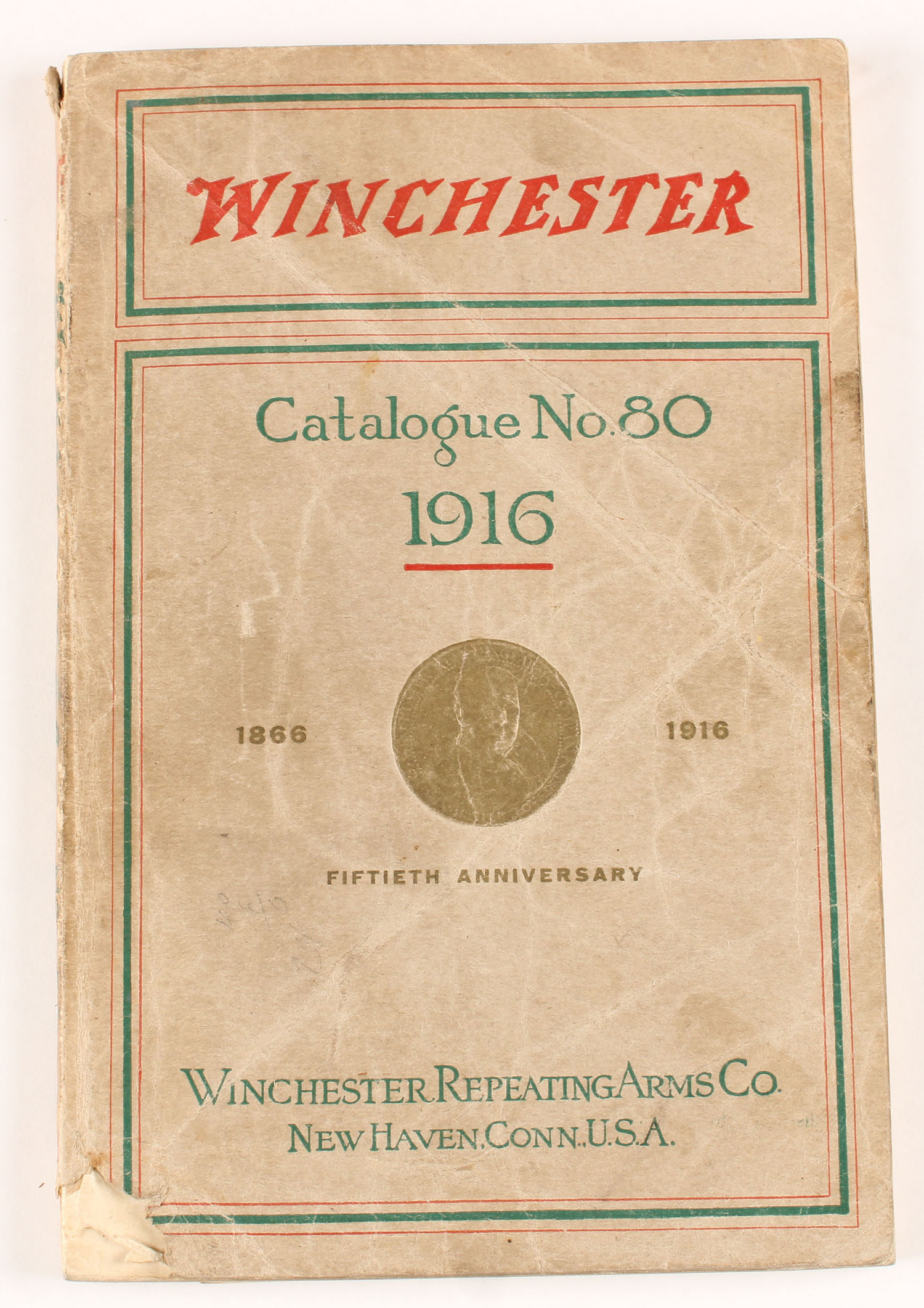 Winchester Catalogue No. 80 1916, 5'' x 8 1/2''. 224 pages, pages clean, binding tight, papercover good, cover and pages have some tears. Value: $120 Grade: Very Good + - Value: 10 to 120