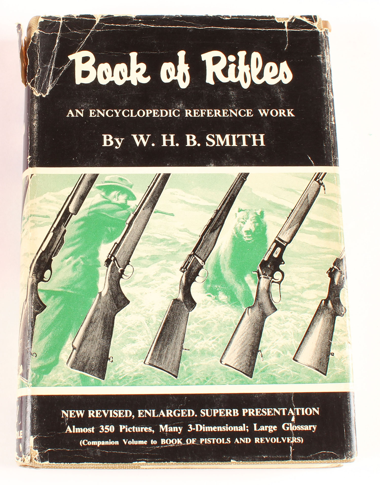 Book of Rifles by W.H.B. Smith 1960, 6 1/2'' x 9''. 576 pages, pages clean, binding tight, hardcover very good, dustjacket has tears in it, b/w images. Grade: Very Good ++ - Value: 2 to 40