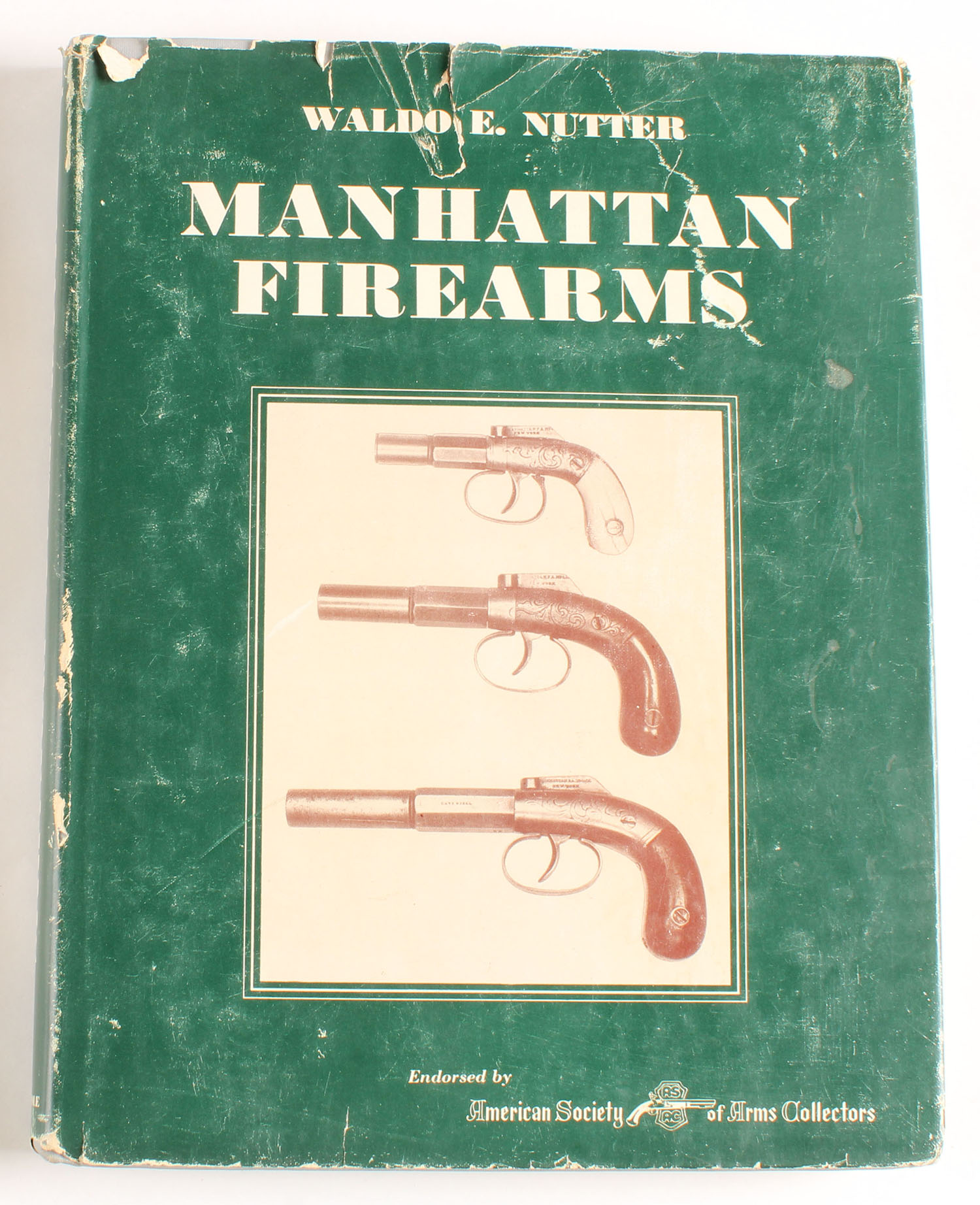 Manhattan Firearms by Waldo E. Nutter 1958, 8 1/2'' x 11''. 250 pages, pages clean, binding tight, dustjacket has tears in it, b/w images. Value: $100 Grade: Very Good + - Value: 10 to 100