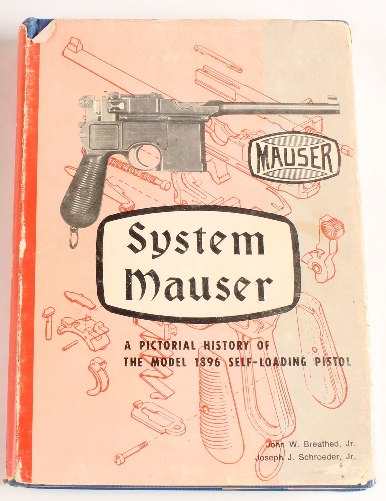 System Mauser: A Pictorial History of The Model 1896 Self-Loading Pistol by John W. Breathed, Jr, and Joseph J. Schroeder, Jr 1967, 7'' x 10''. Pages clean, binding tight , hardcover good, dustjacket has tears in it. Value: $300 Grade: Very Good + - Value: 40 to 300