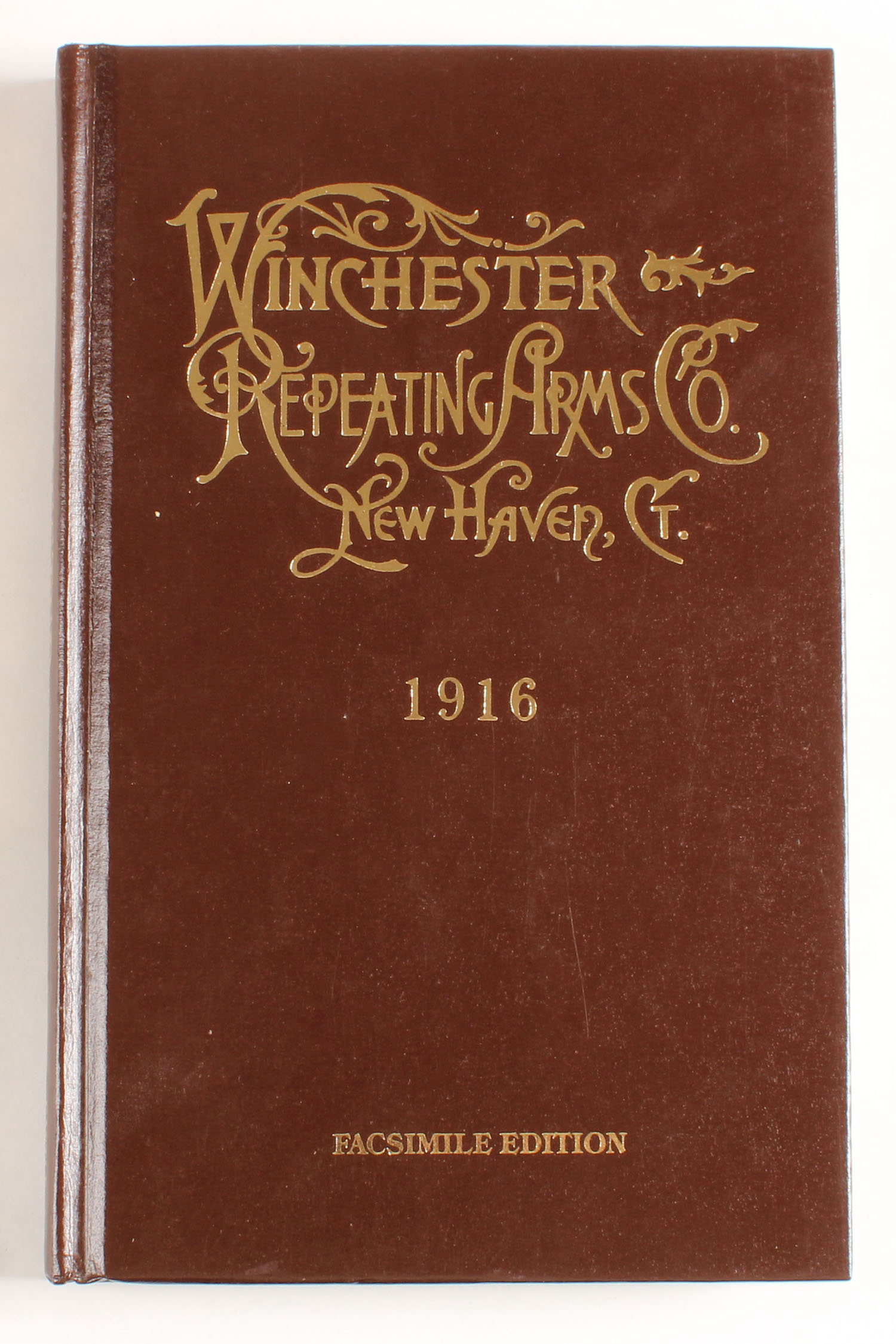 Winchester Repeating Arms Co. 1916 Facsimile Edition, 5 1/2'' x 9''. 224 pages, pages clean, binding tight, hardcover excellent, b/w images. Value: $256 Grade: Excellent ++ - Value: 40 to 250