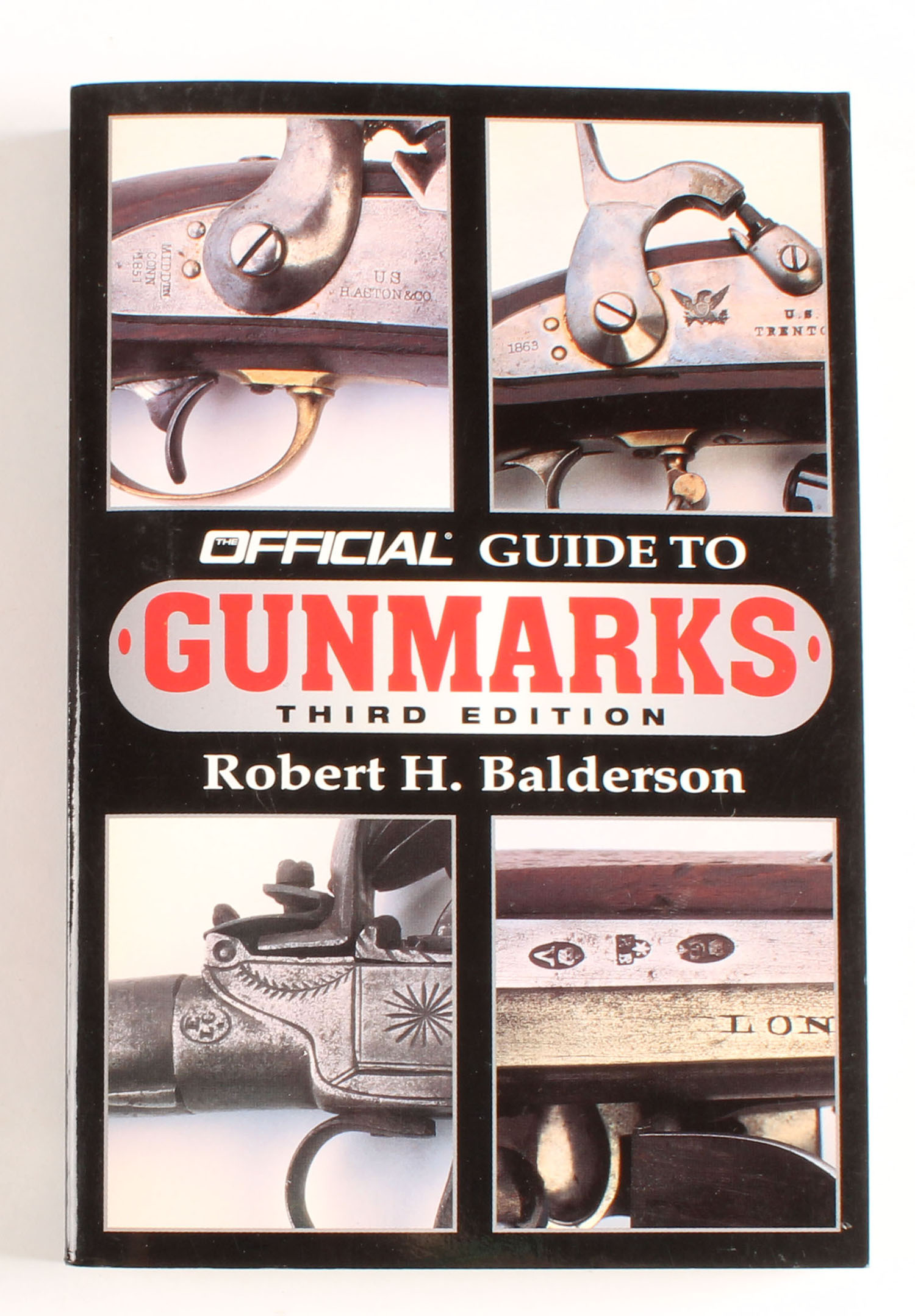 The Official Guide to Gunmarks Third Edition by Robert H. Balderson 1996, 5 1/2'' x 8''. 367 pages, pages clean, binding tight, softcover very good. Value: $250 Grade: Excellent + - Value: 20 to 300