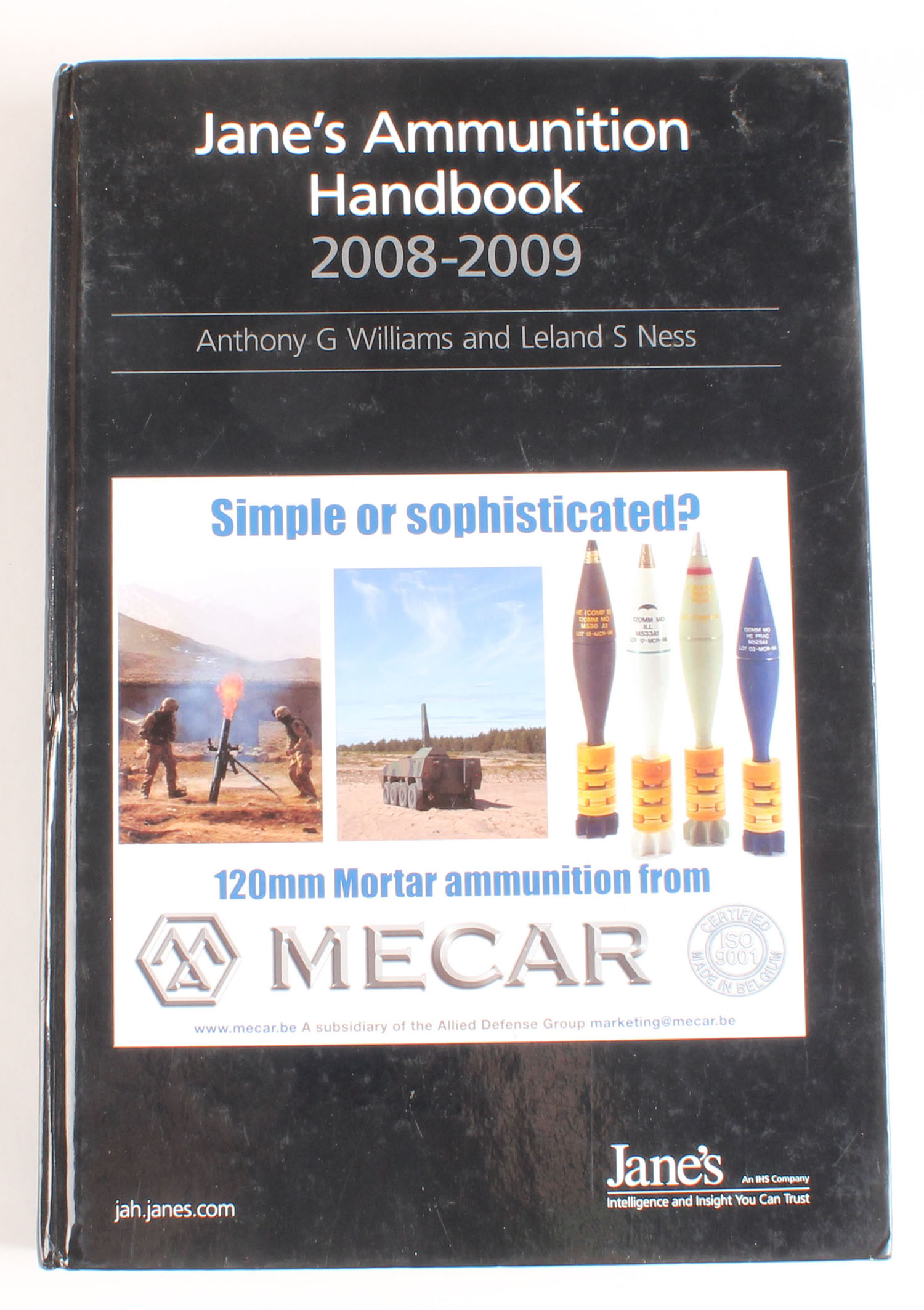 Jane's Ammunition Handbook 2009-2010 by Anthony G. Williams and Leland S Ness 2009, 8 1/2'' x 13''. 888 pages, pages clean, binding tight, hardcover excellent. Value: $1,000 Grade: Excellent + - Value: 100 to 1000