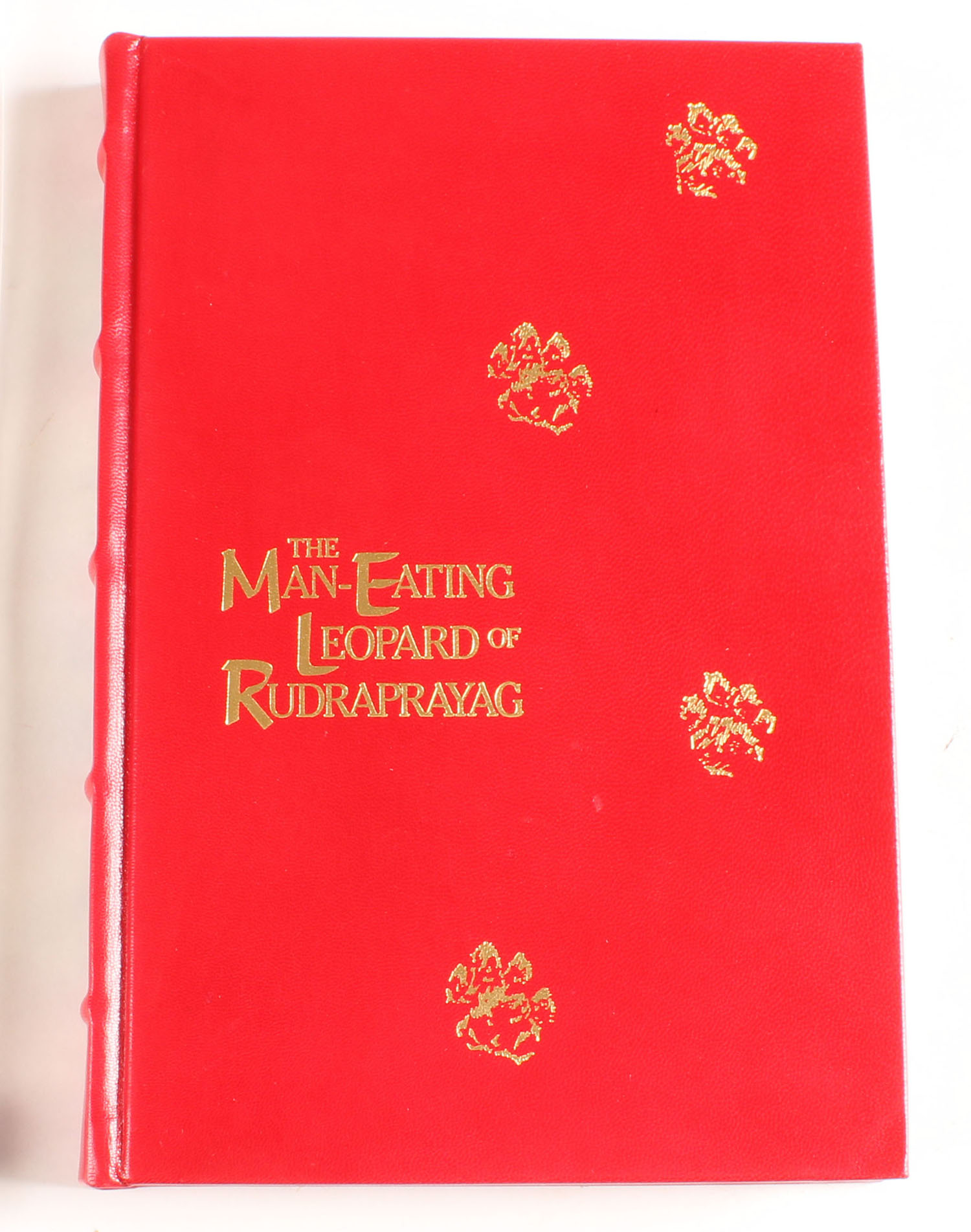 The Man-Eating Leopard Of Rudraprayag by Jim Corbett 1994, 6'' x 9''. 190 pages, pages clean, binding tight, hardcover mint, full red bonded leather, spine & upper board titled in gilt, silk marker, top edge gilt. Value: $115 Grade: MINT - Value: 5 to 115