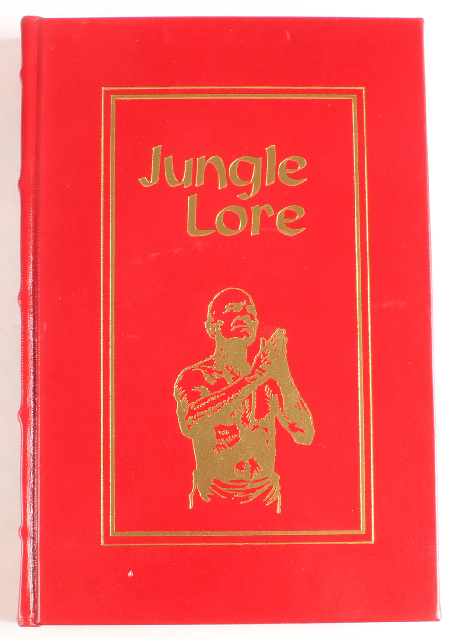 Jungle Lore by Jim Corbett 1995, 6'' x 9''. Number 971 of 1500, 173 pages, number 971 of 1500, full red bonded leather, spine & upper board titled in gilt, silk marker, pages clean, hardcover mint. Value: $125 Grade: MINT - Value: 10 to 125