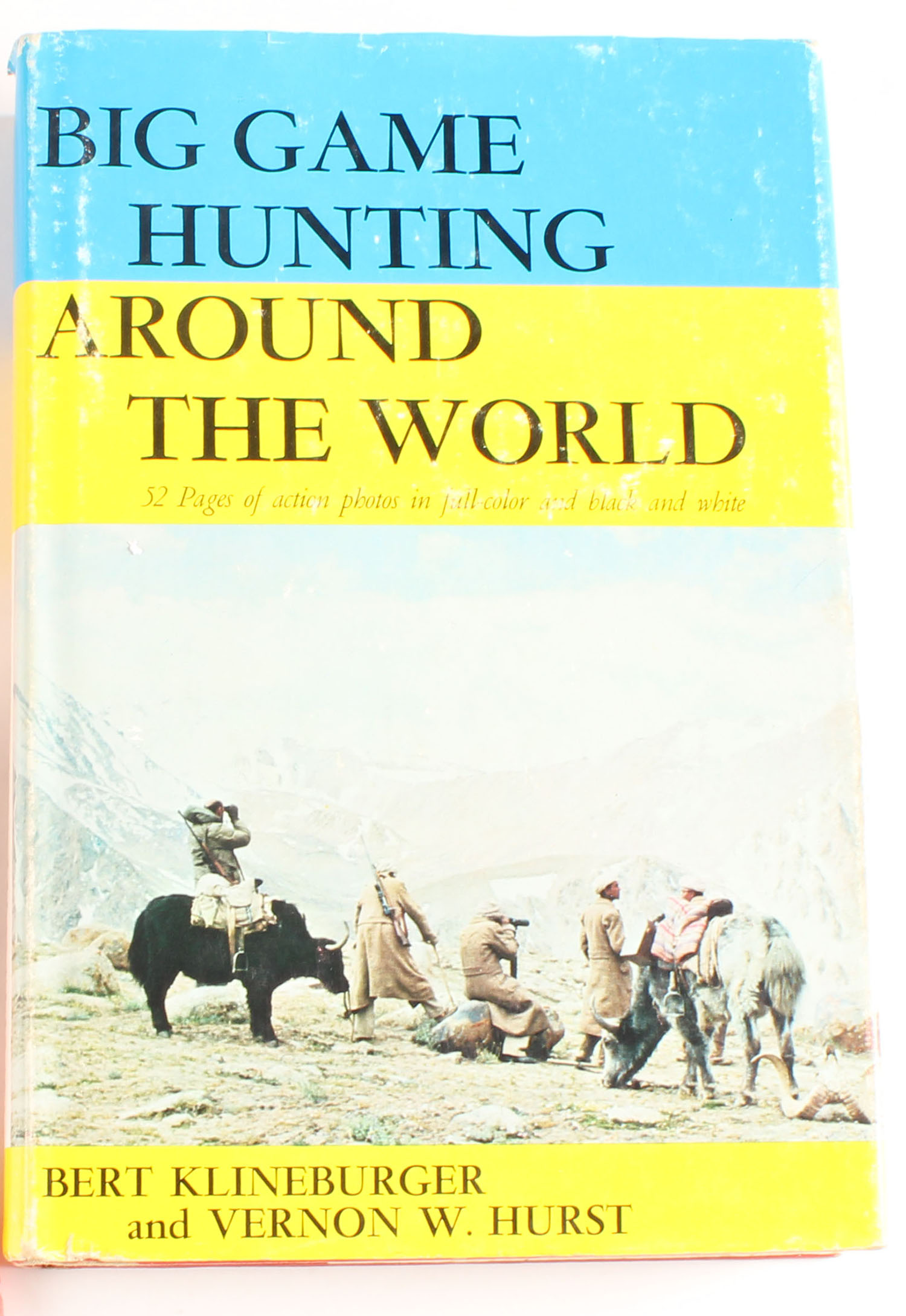 Big Game Hunting Around The World 1969 by Bert Klineburger and Vernon W. Hurst, 6'' x 9''. 376 pages, pages clean, binding tight, hardcover and dustjacket very good. Value: $150 Grade: Very Good ++ - Value: 10 to 150