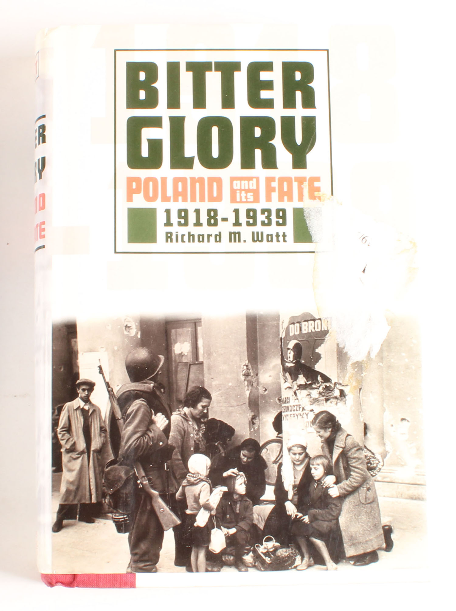 Bitter Glory: Poland & Its Fate 1918-1939 3rd Edition 1998 by Richard M. Watt, 6 1/2'' x 9 1/2''. 511 pages, pages clean, binding tight, hardcover and dustjacket very good. Value: $50 Grade: Very Good + - Value: 10 to 50