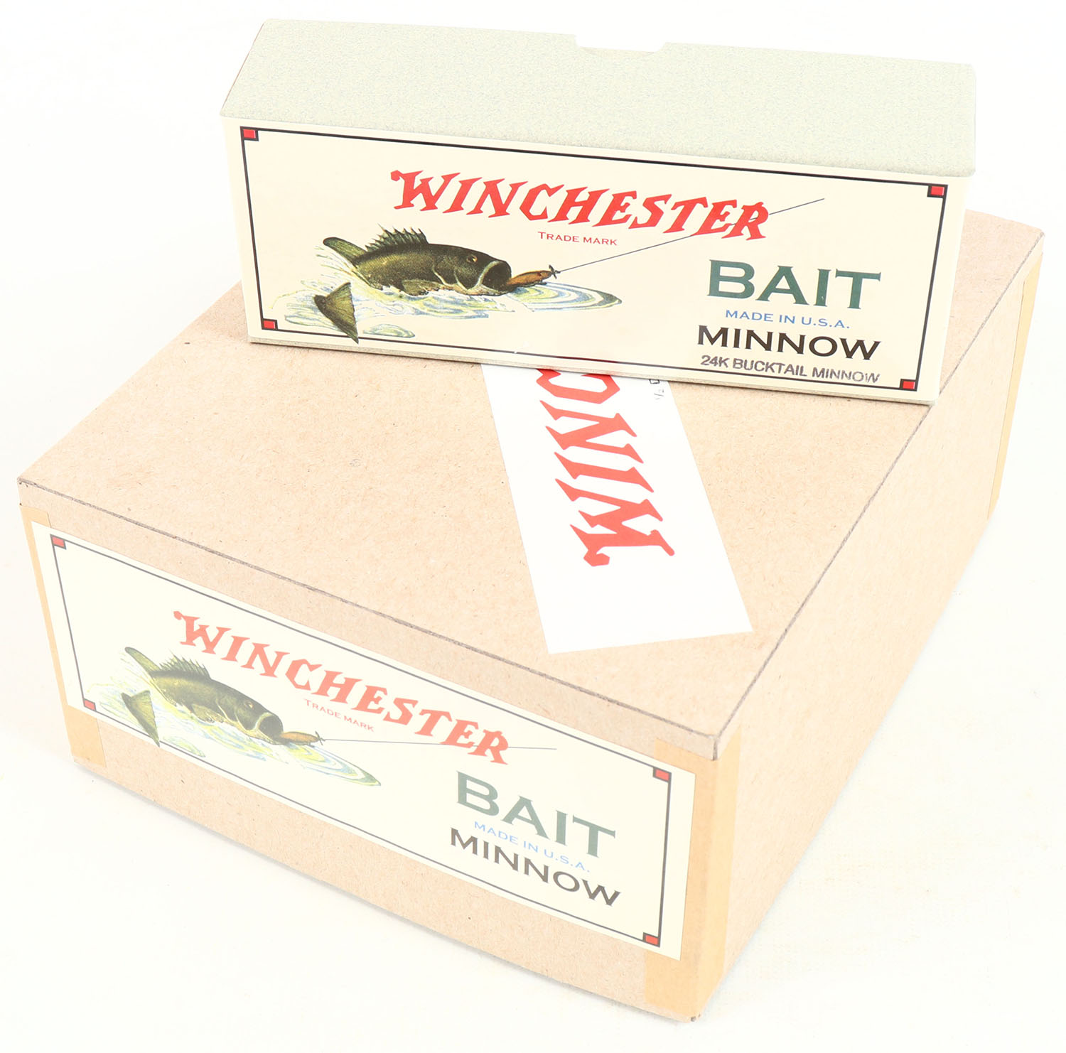 Near Full Case of Winchester 5 & 3 hook lures, has 3 marked 2002, (1) marked 2002 2nd & one marked 2001. all are sealed but the No. 2001. Grade: MINT - Value: 100 to 500