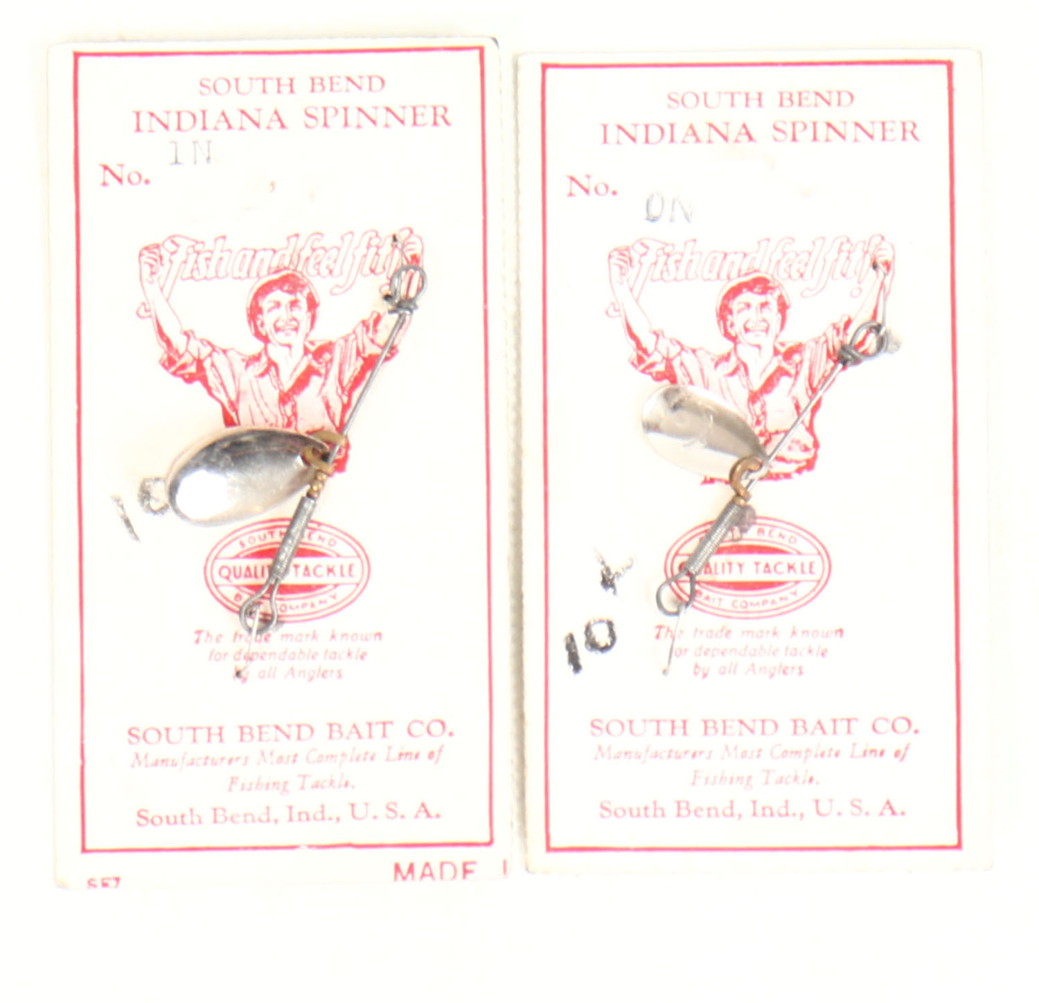 Lot of 2 South bend Indiana Spinners on card, 1N & 0N. Grade: Excellent - Value: 2 to 30