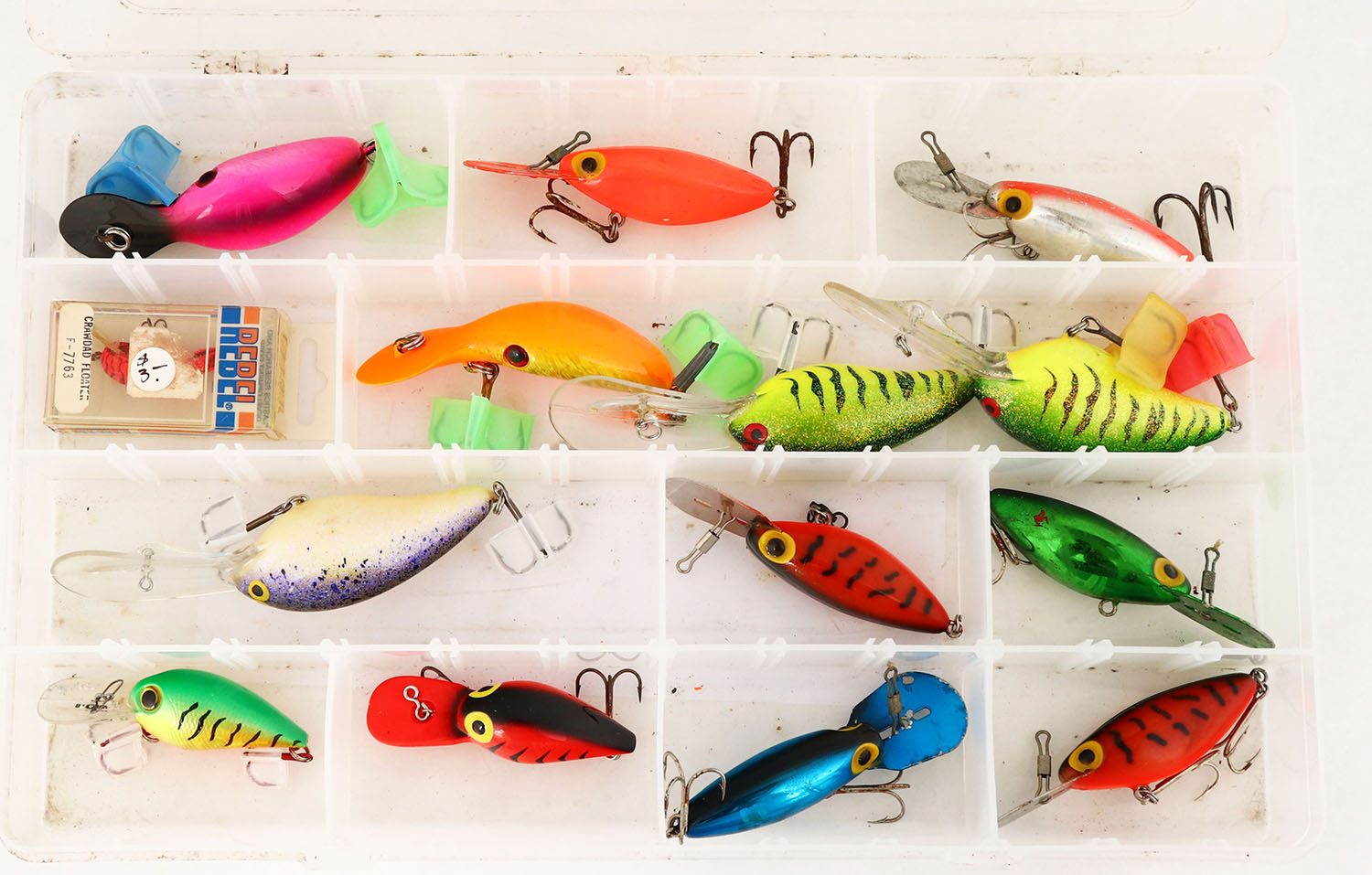 | Lot of 14 Diving Plugs with box. Grade: Excellent ++ - Valu...
