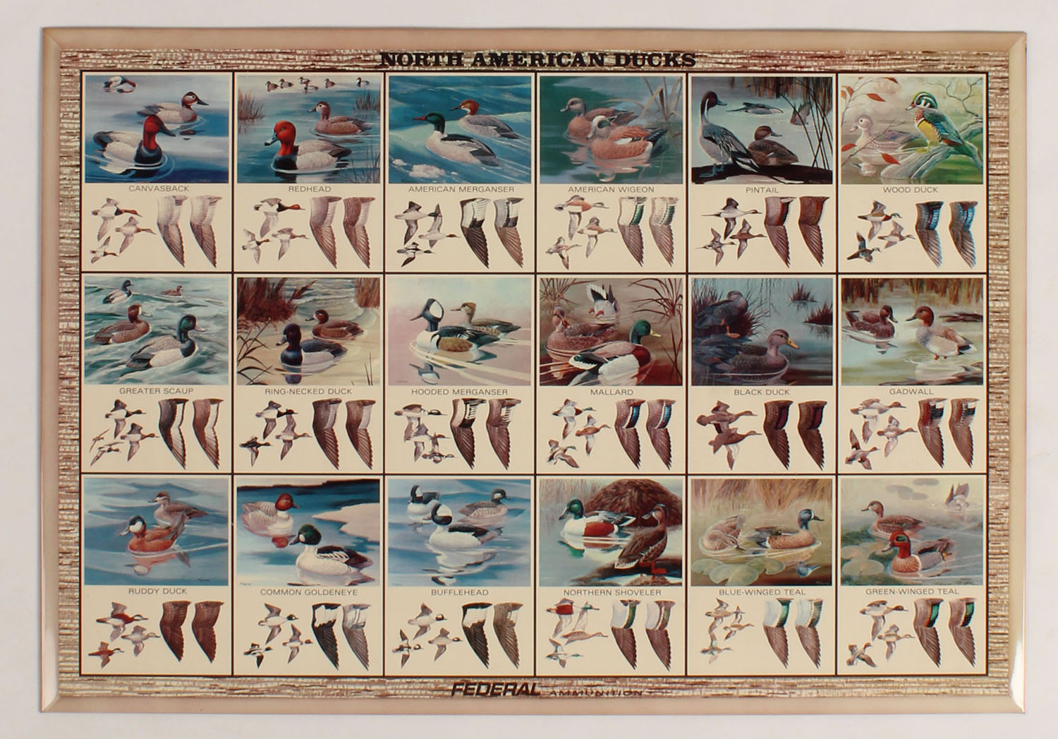 Federal North American Ducks Tin sign with original cardboard box, 23'' x 16''. Grade: MINT - Value: 30 to 100