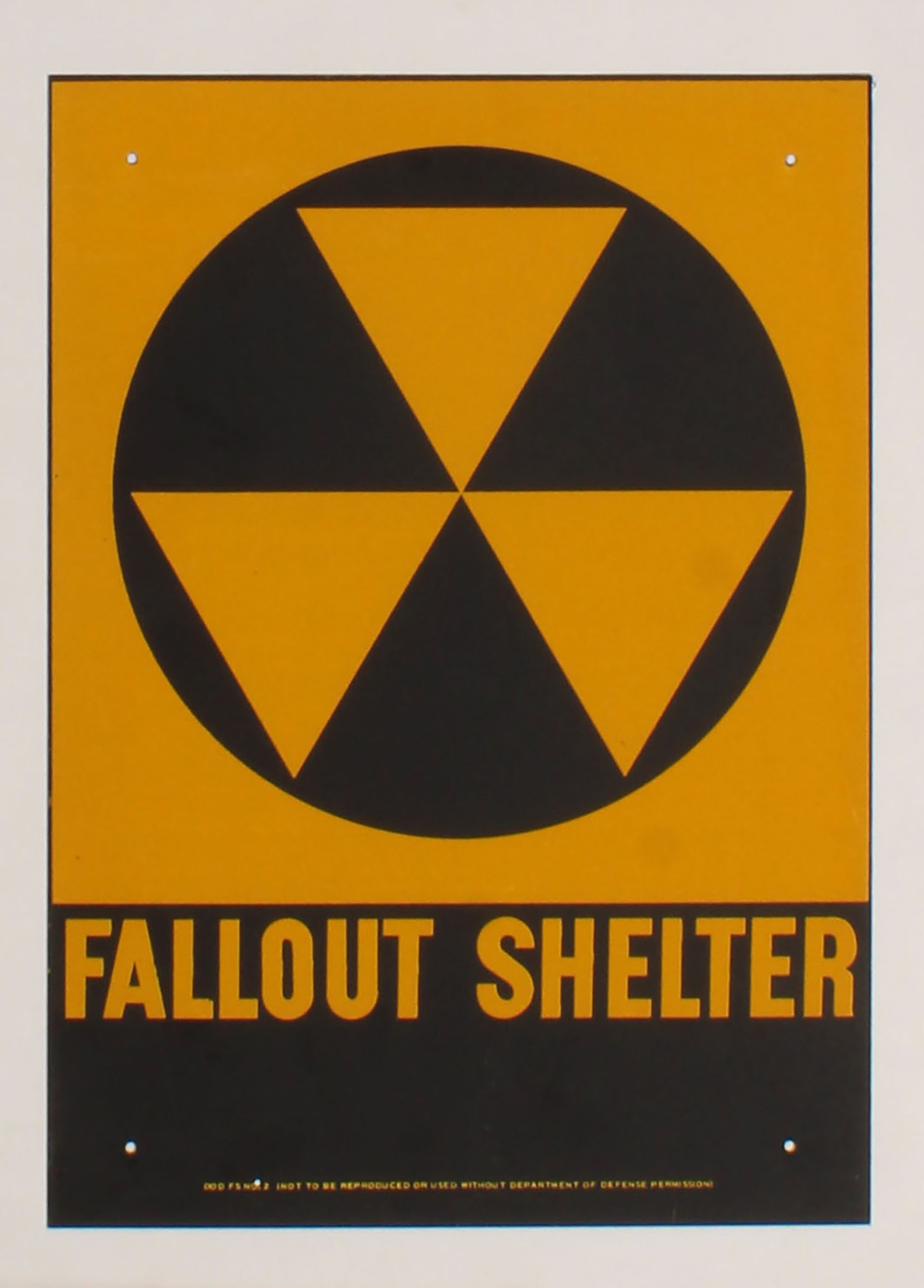 FALLOUT SHELTER sheet metal sign, 10'' x 14''. Grade: MINT - Value: 10 to 50