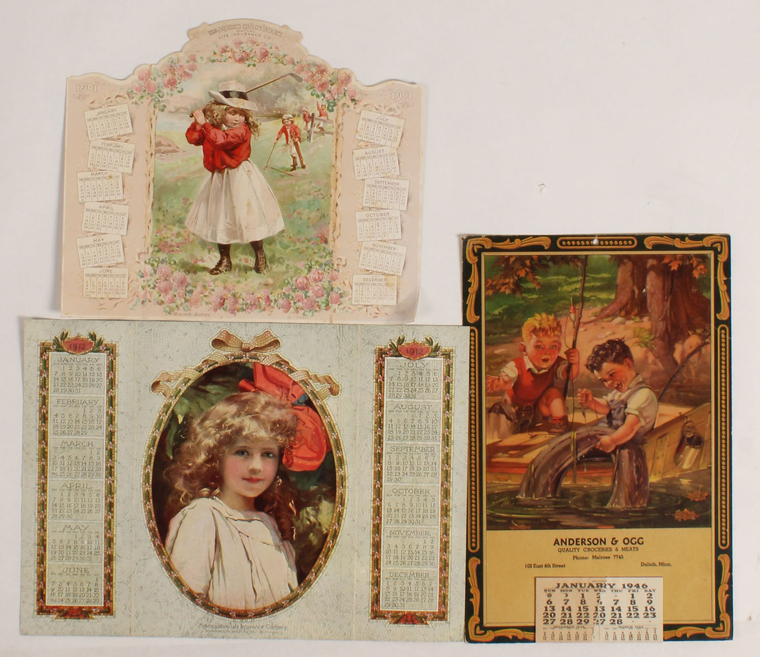 Lot of 3 calendars, 1901, 1912 & 1946, pictures ladies or young boys. Grade: Very Good ++ - Value: 2 to 100