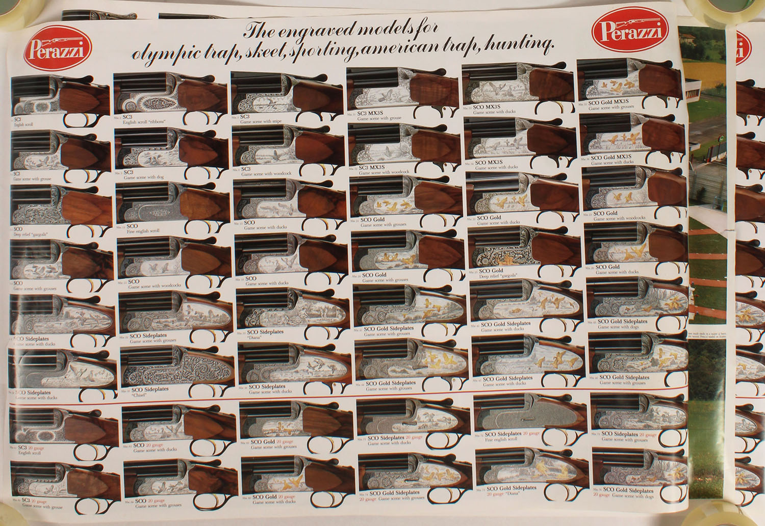 Lot of 3 Perazzi Shotgun posters, pictures detailed engraving of receiver, 39'' x 27''. Grade: MINT - Value: 20 to 100