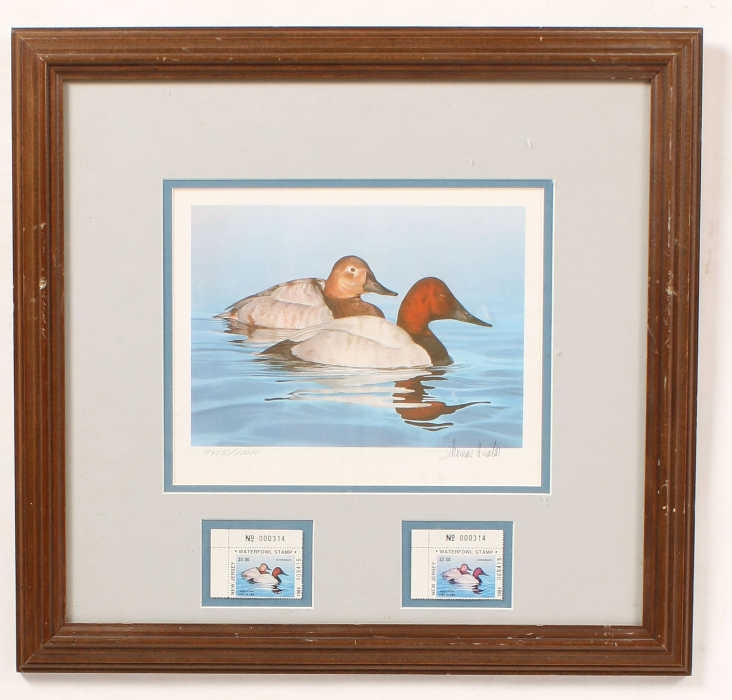 1984 Jew Jersey waterfowl stamp/print by Thomas Hirata, framed & matted, No. 9415/10,011. Grade: Excellent - Value: 10 to 50