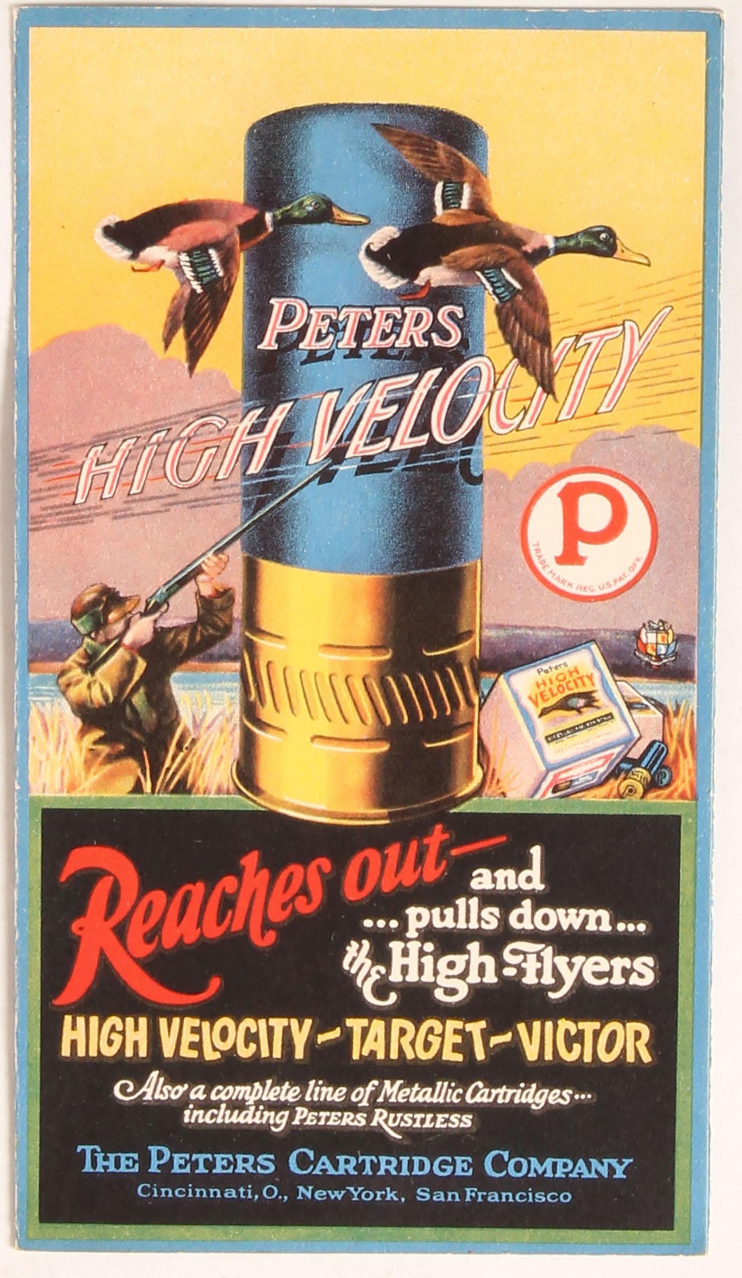 Peters High Velocity Shotshell brochure, wonderful full color images inside & out. Grade: MINT - Value: 40 to 200