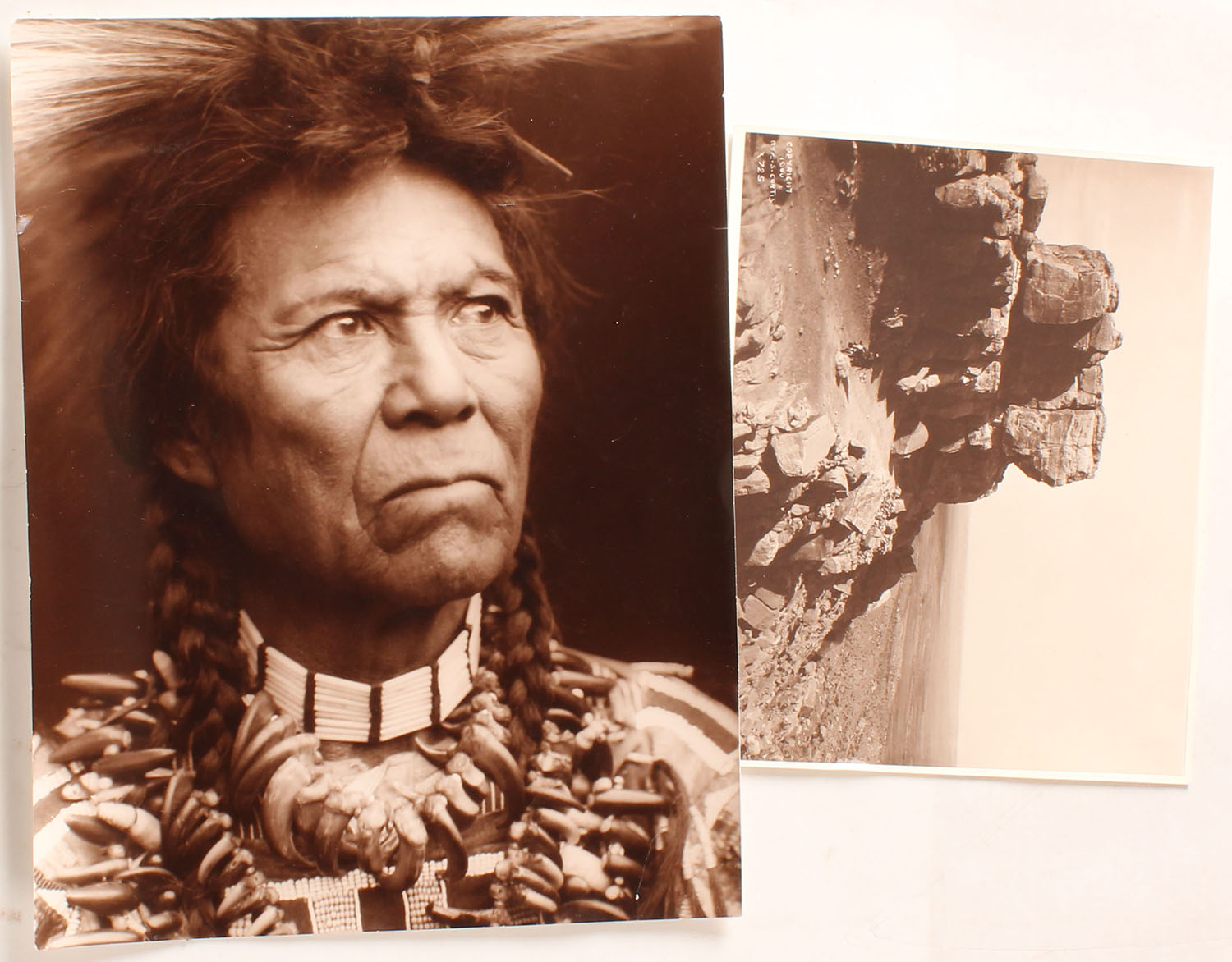 Lot of 2 B&W photos, one is of Chief Whirlwind Chyuse Tribe 1900, Trail At the Gap 1900. Grade: Excellent - Value: 10 to 60