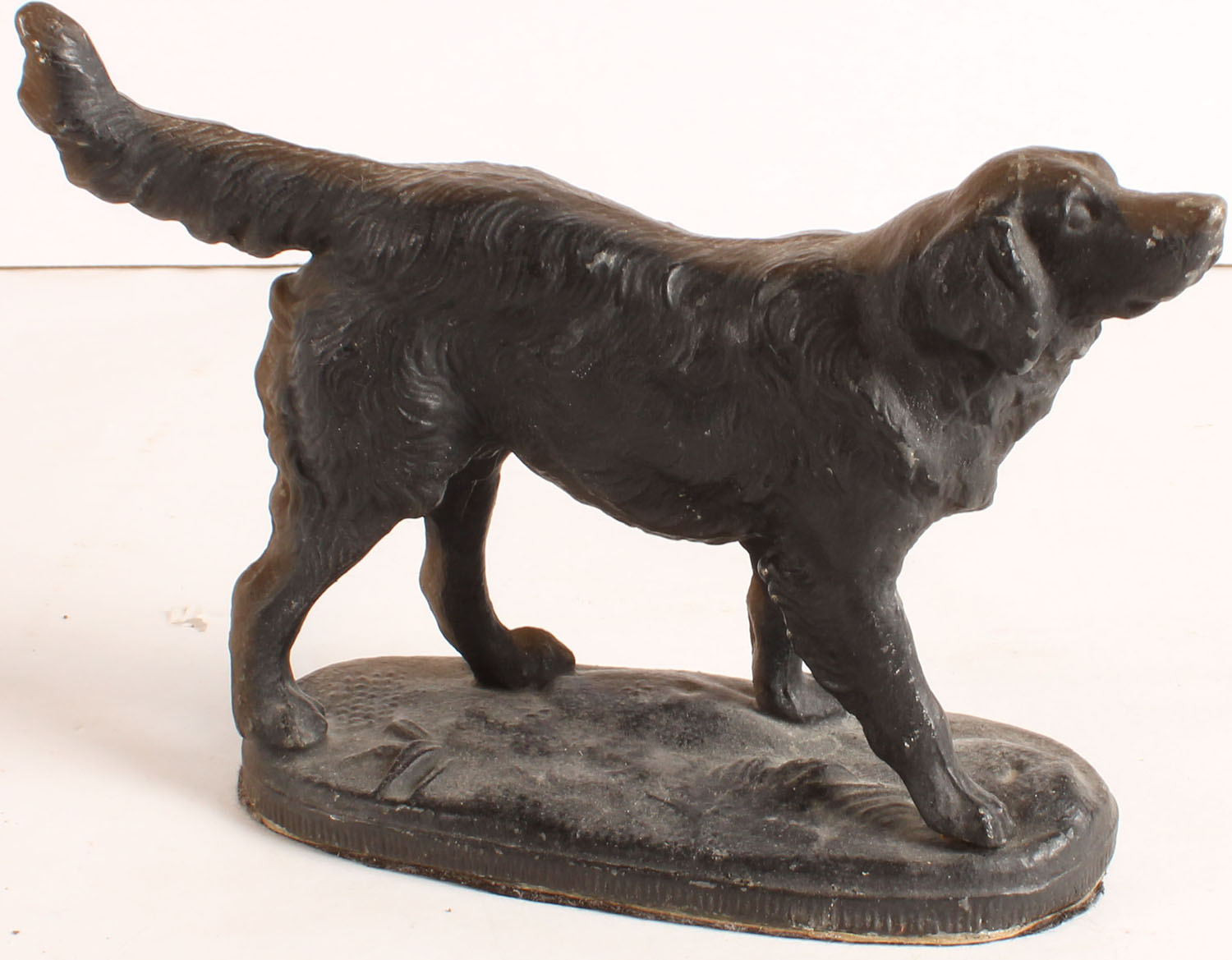 Dog on point made of metal, 8'' long. Grade: Excellent - Value: 10 to 60
