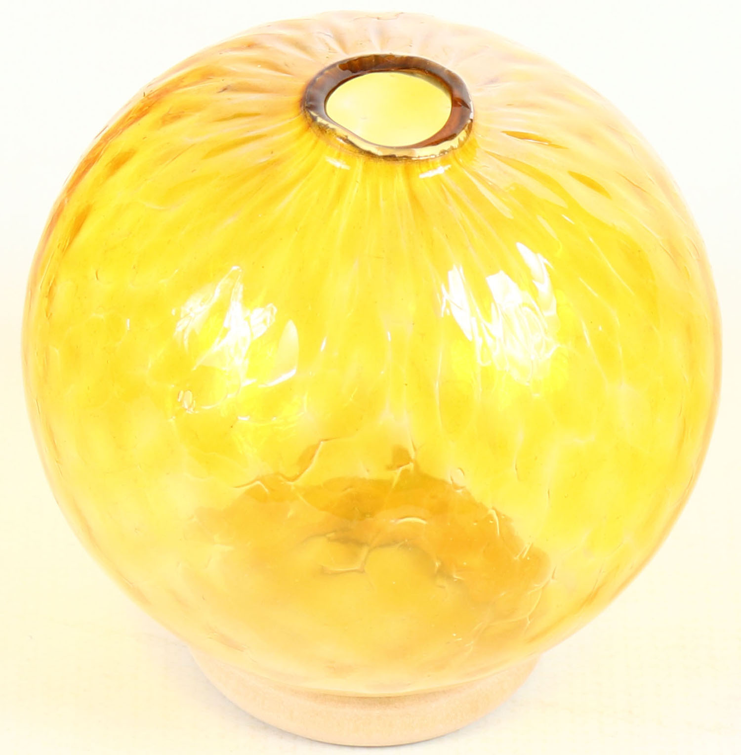 Rare Amber Glass Target Ball, unmarked, fish net design, low neck, very collectible. Grade: Excellent - Value: 200 to 500
