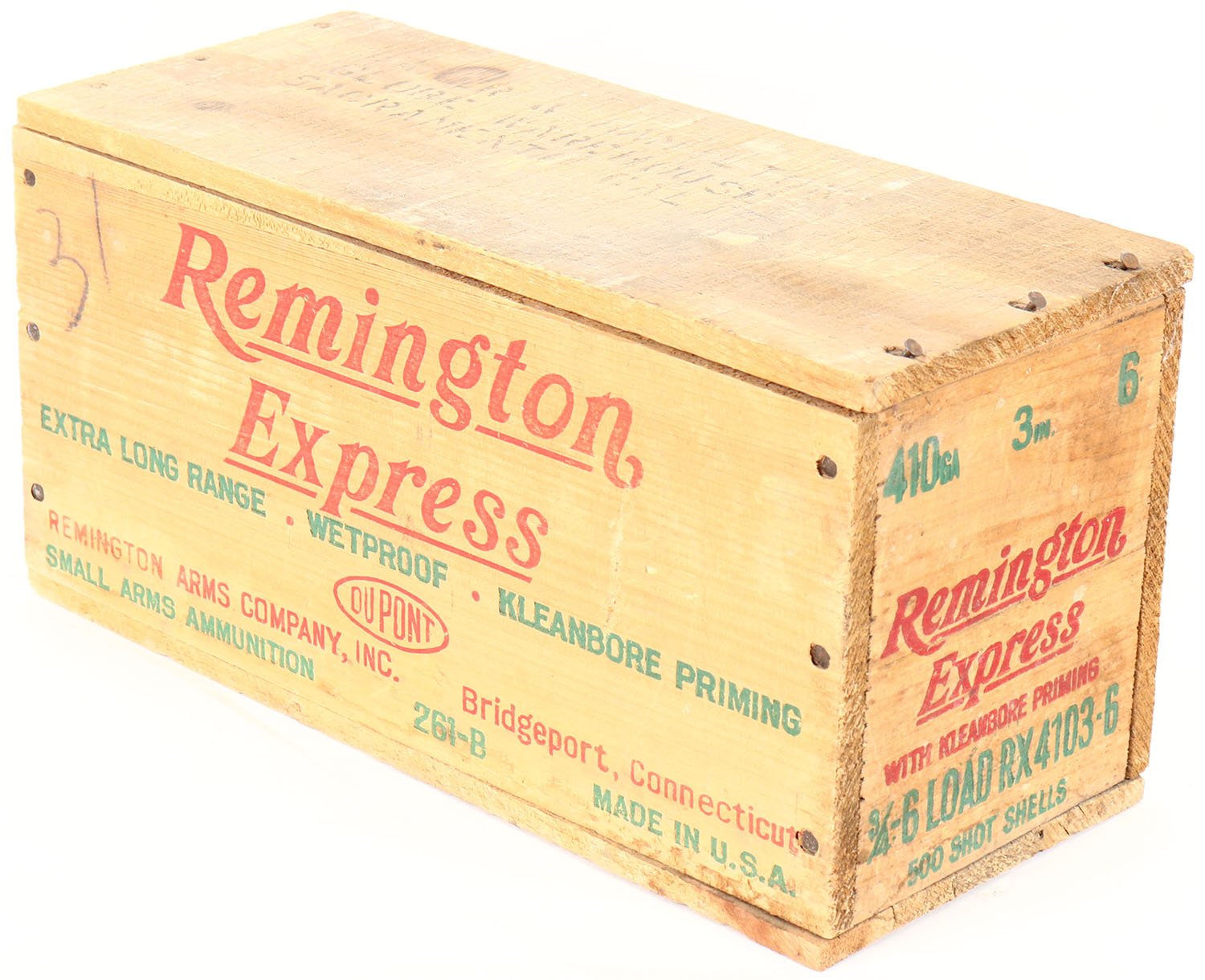 Remington Kleanbore Express, 410 Ga., nail construction, red, & green print is solid and crate is solid. Grade: Very Good ++ - Value: 20 to 80
