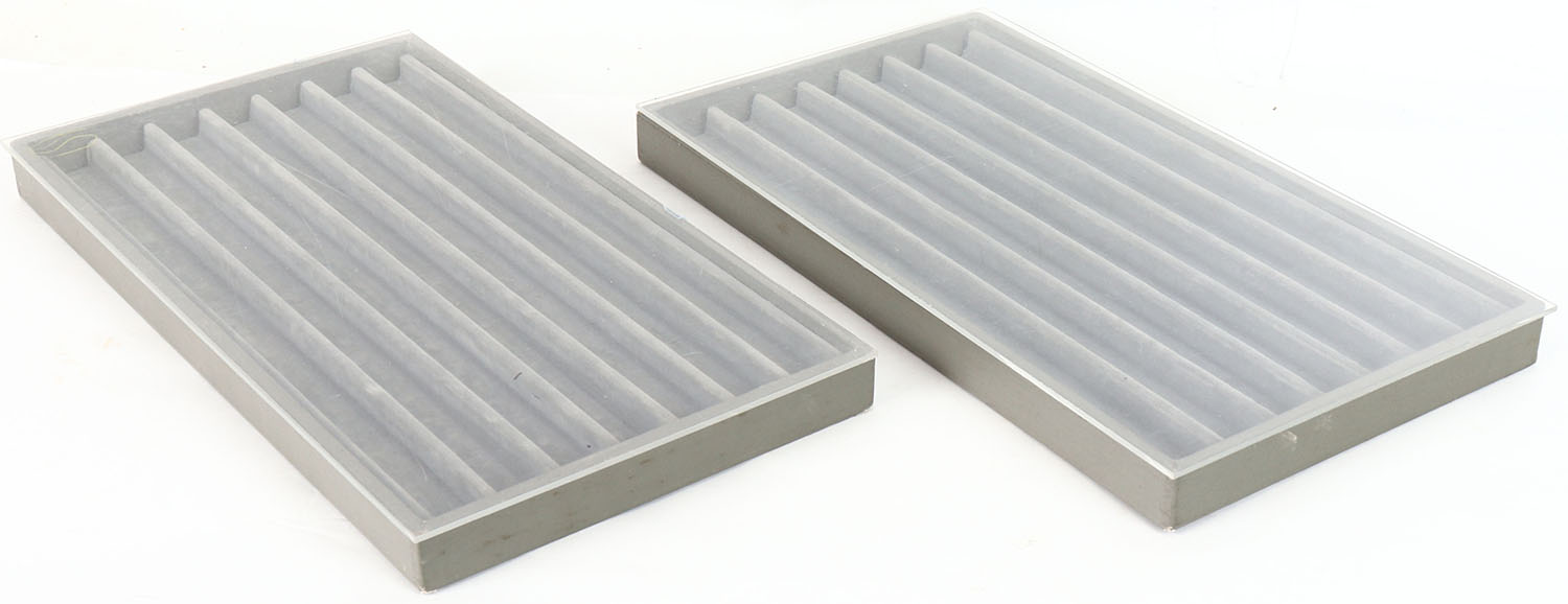 Lot of 2 slotted velvet lined cart. display cases with plexi glass lids. Grade: Excellent - Value: 10 to 50