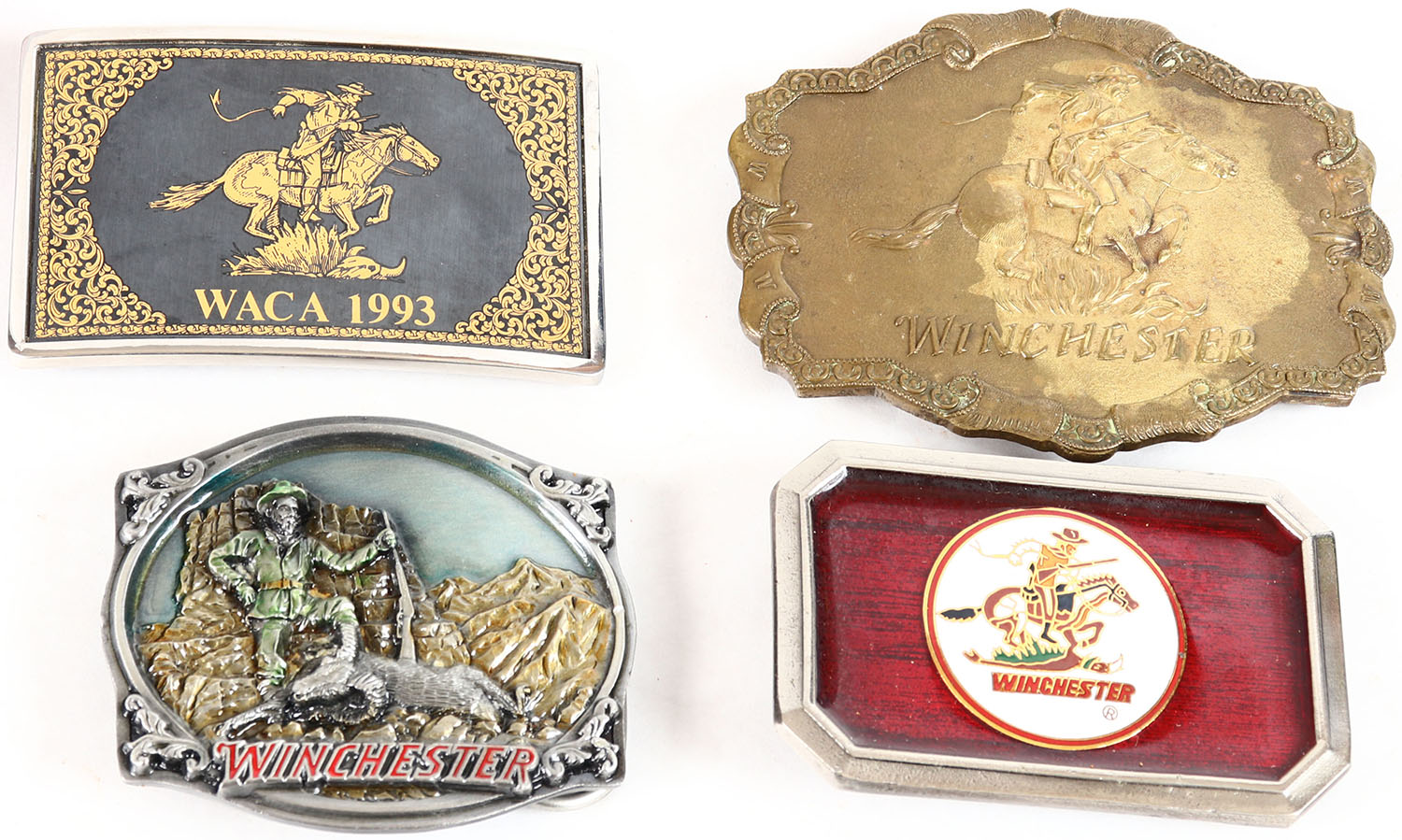 Lot of 4 Winchester Belt Buckles. Grade: Excellent ++ - Value: 10 to 40