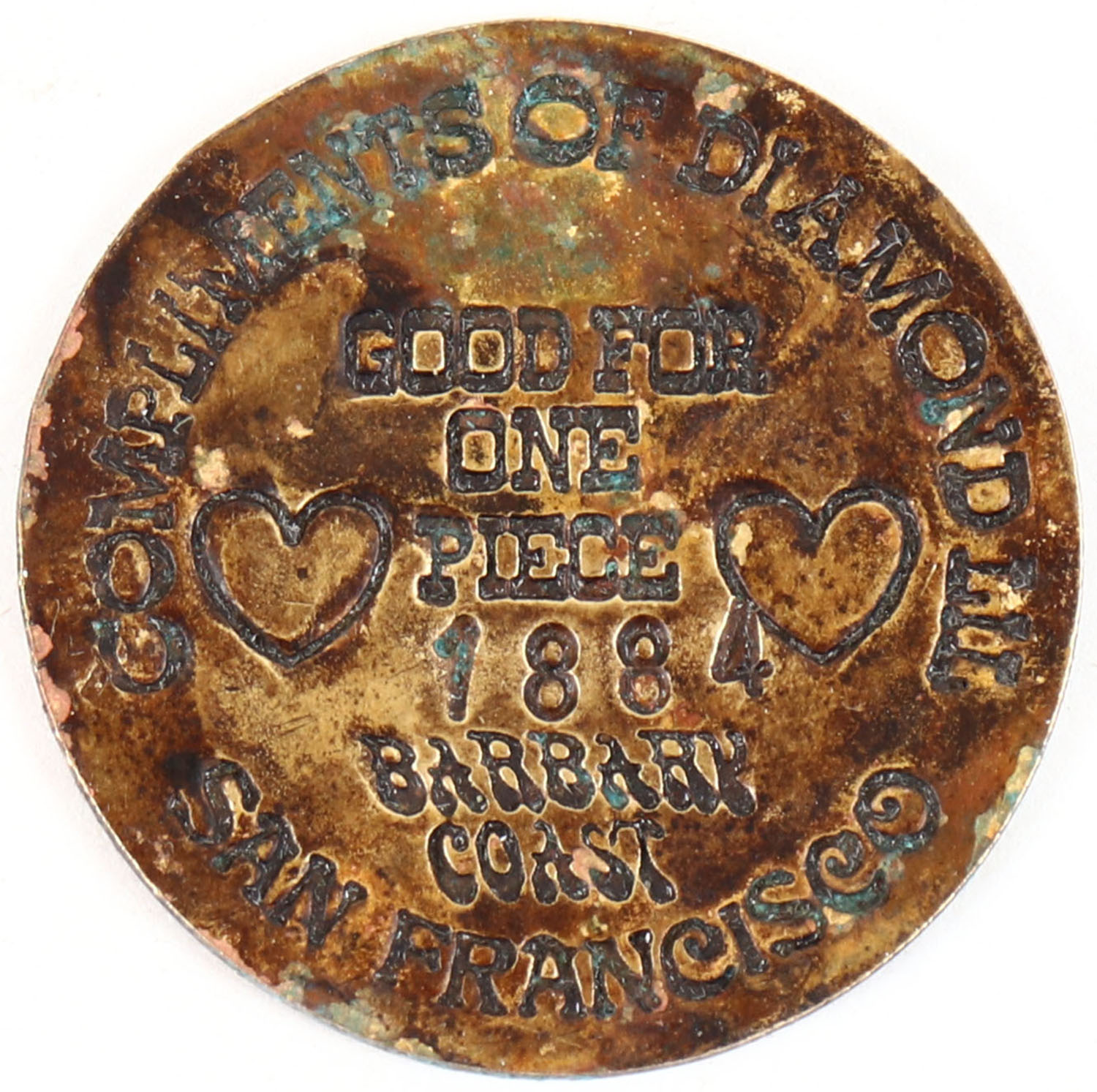 Brothel Token San Francisco dated 1884. Grade: Very Good - Value: 30 to 100