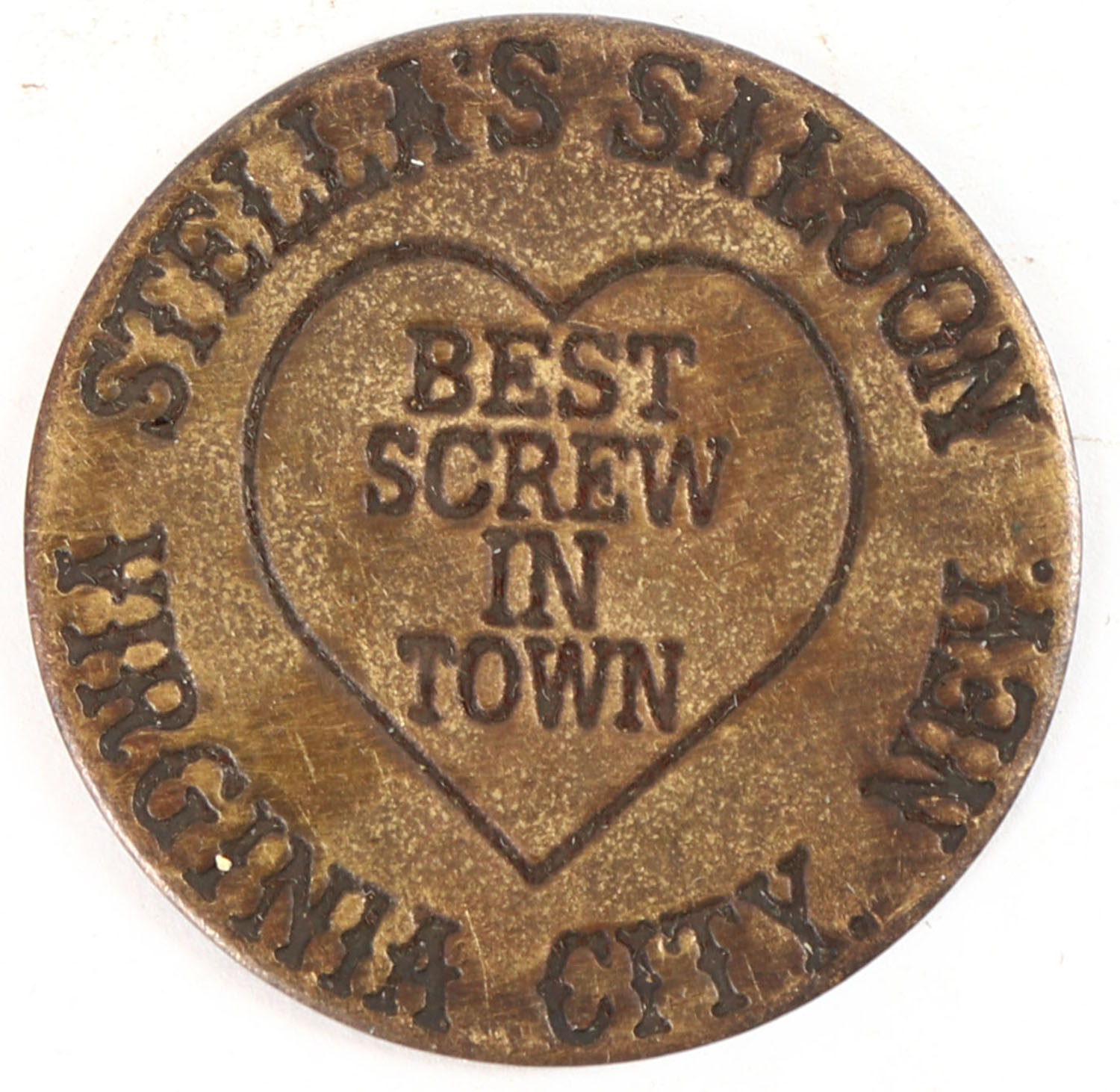 Double sided Brothel Token. ''Stellas Saloon''. Grade: Excellent - Value: 10 to 40