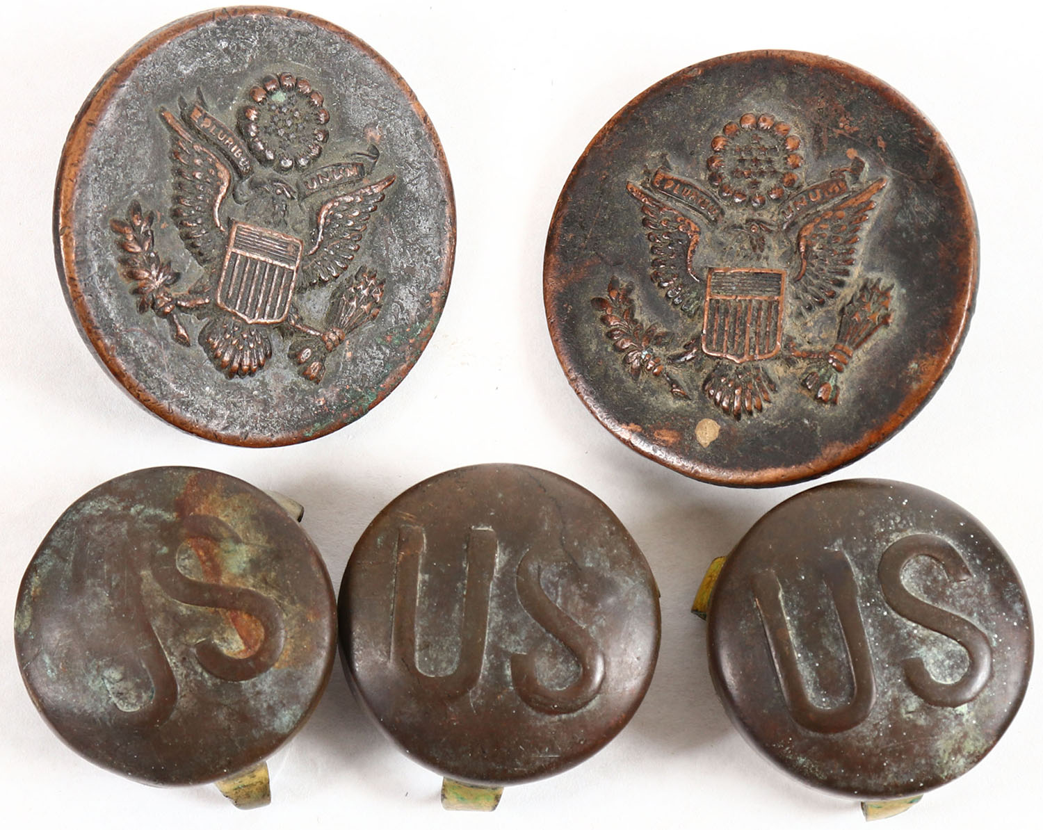 Lot of Military badges, Brass US Medallion from old bridle or horse halter, early 1900s. Grade: Excellent - Value: 6 to 60