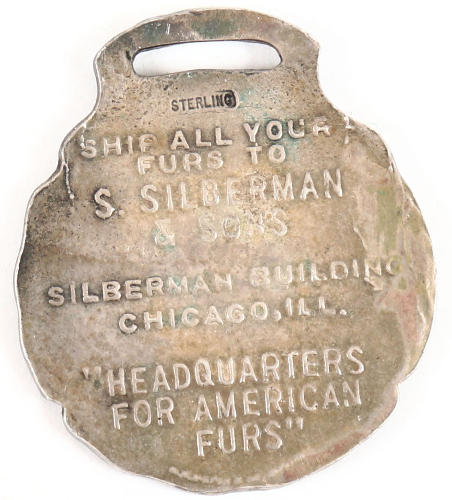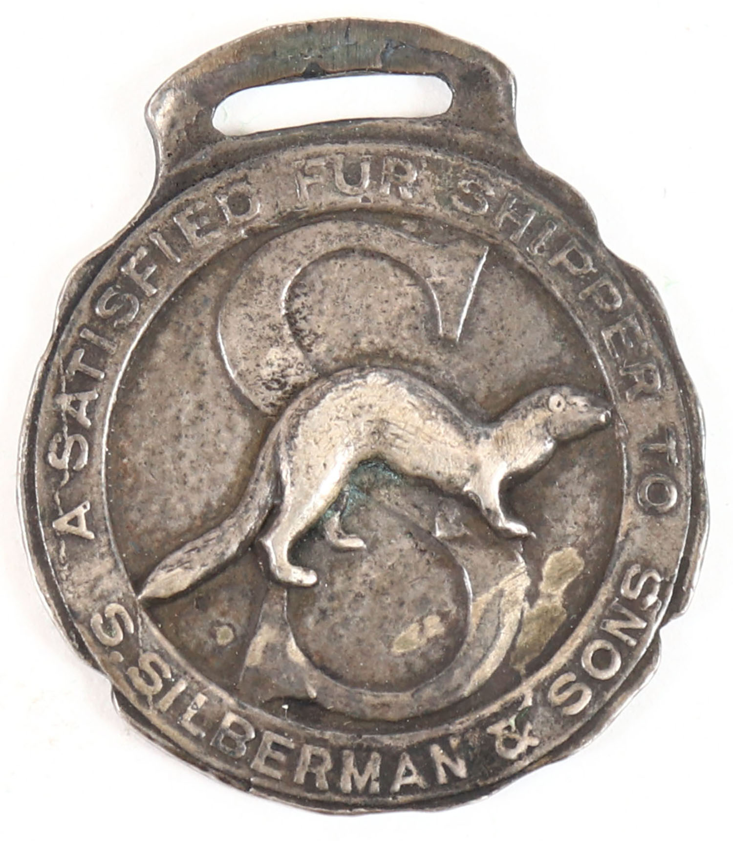 S.Silberman & Sons watch fob, has some age soiling. Grade: Very Good + - Value: 20 to 100