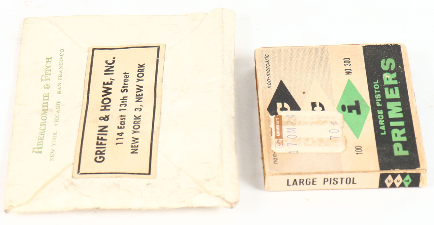 lot of 2, CCI primer box and Abercrombie & fitch with Griffin & Howe Inc sticker maybe gun parts, primer box is partial. Grade: Very Good - Value: 2 to 40
