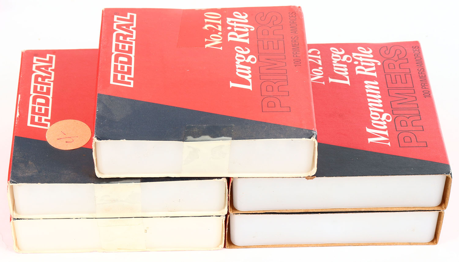 lot of 5 Federal large magnum rifle primers, all FULL. Grade: Excellent - Value: 10 to 50