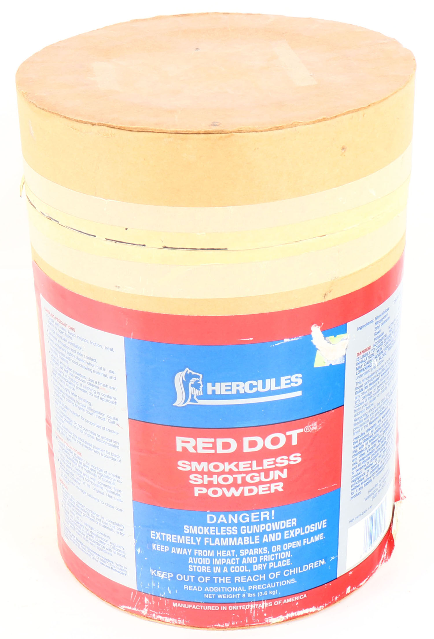 Large Hercules Red dot smokeless shotgun powder, Empty. Grade: Excellent - Value: 2 to 20