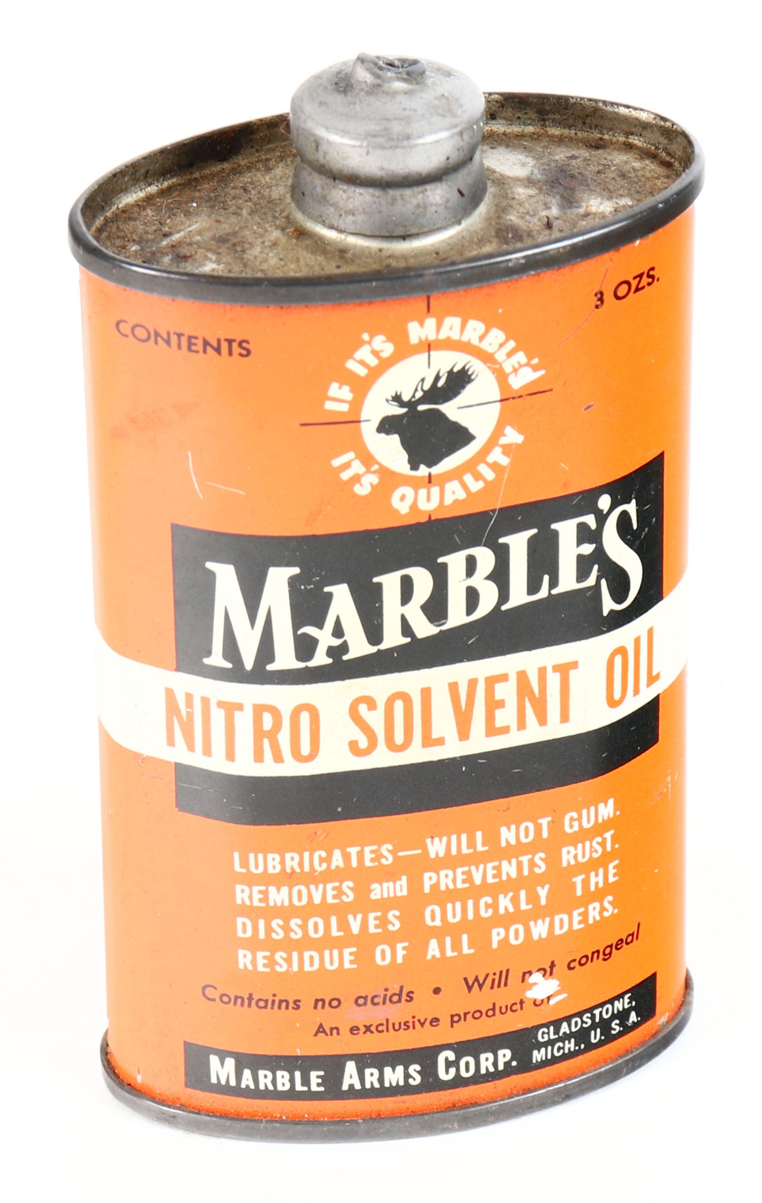 RARE! Marbles oil, tin, no spout and cap. Grade: Very Good - Value: 10 to 60