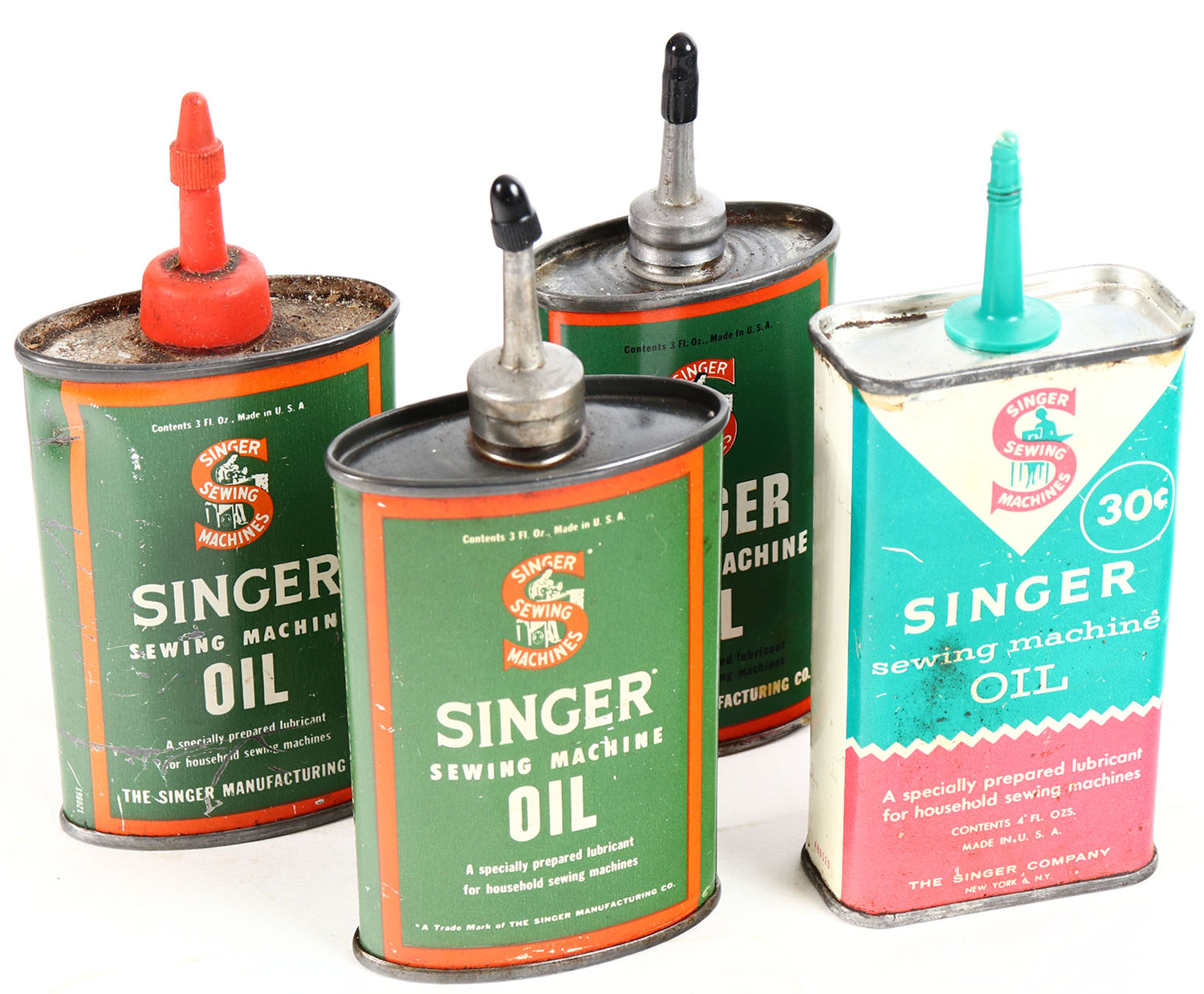Lot of 4, oil tins, partial, some age soiling. Grade: Very Good ++ - Value: 4 to 40