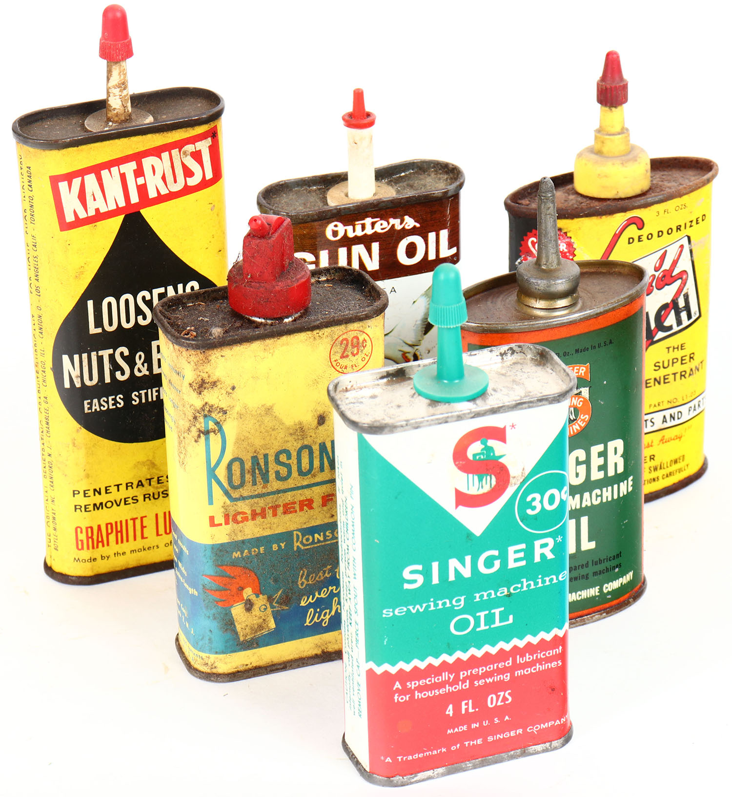 Lot of 6, oil tins, partial, age soiling and rust. Grade: Very Good - Value: 6 to 50