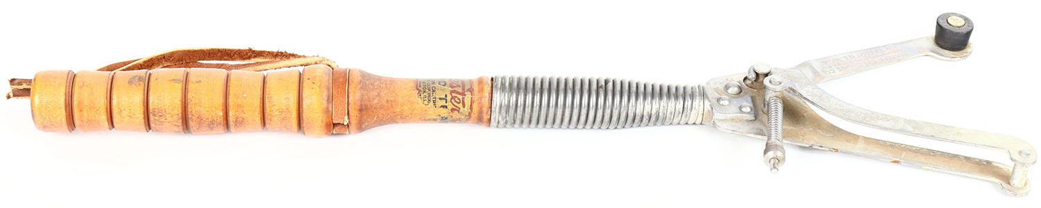 Western hand trap thrower. Has age soiling. Grade: Very Good + - Value: 4 to 40