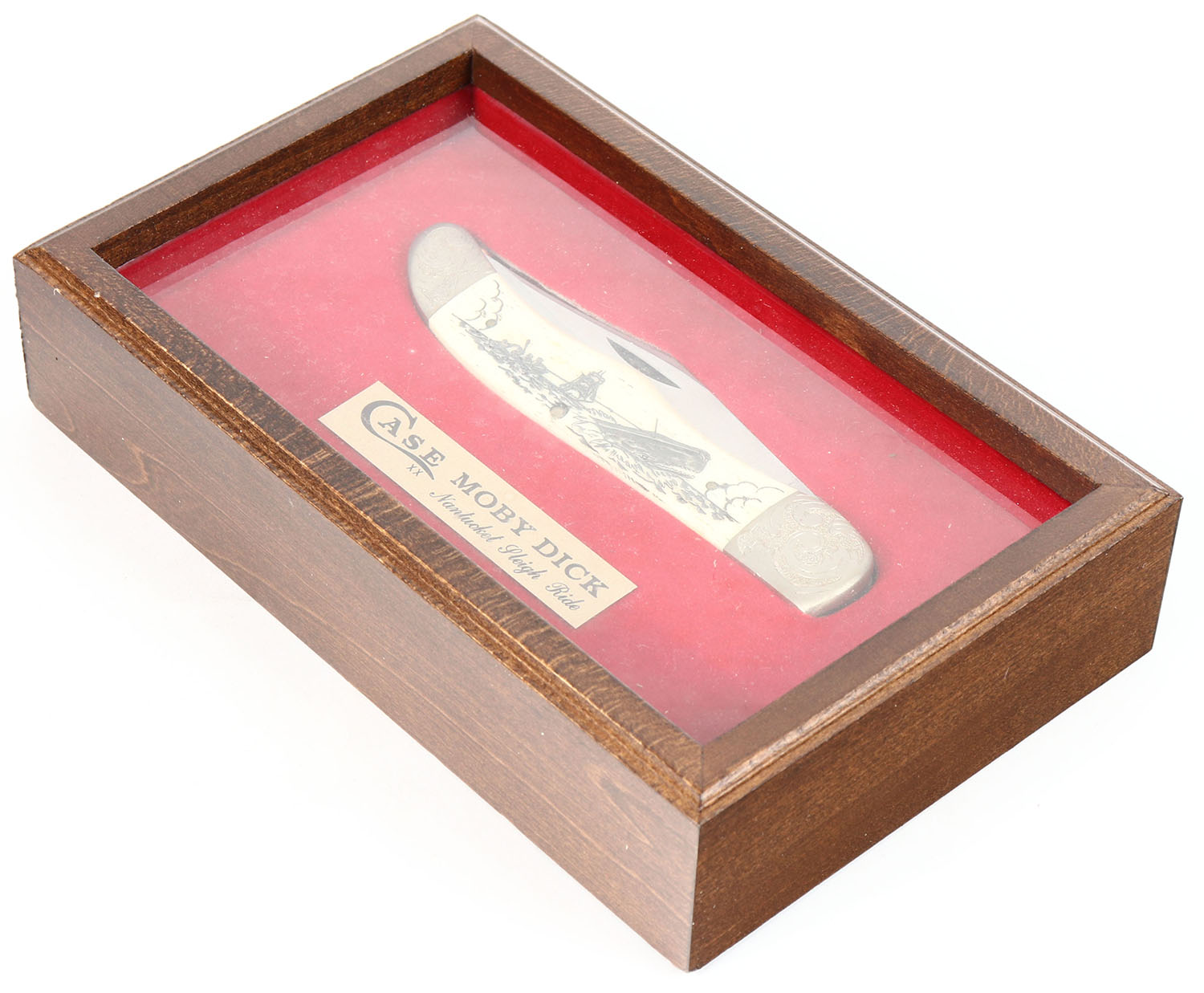 RARE! Case knife, Moby DICK, folding knife, scrimshaw handle 4 1/2'' blade, has wood display box. Grade: Excellent - Value: 100 to 250