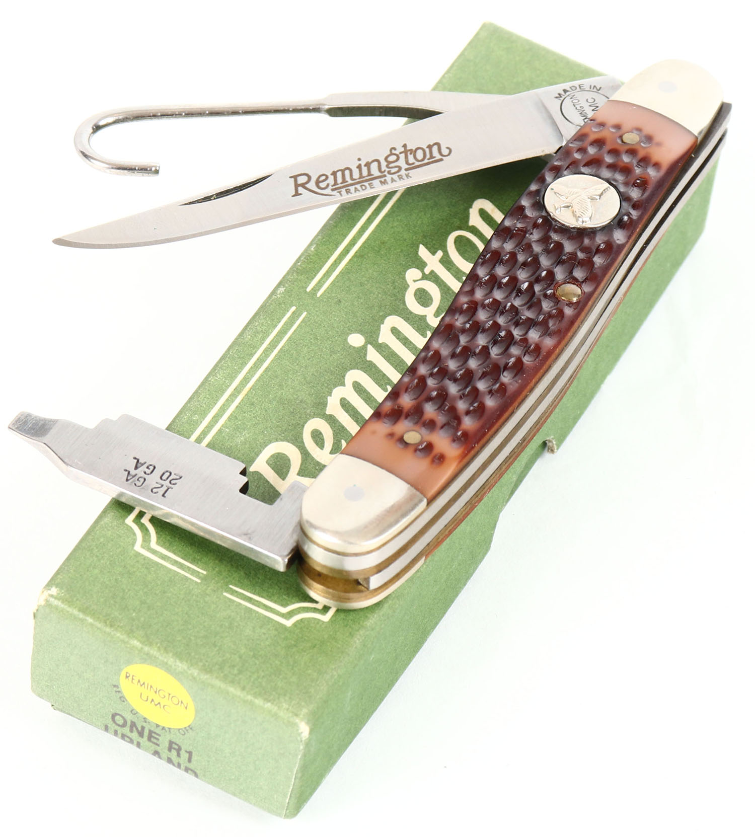 Remington UMC knife, One R1 Upland, has cardboard box. Grade: Excellent ++ - Value: 16 to 60
