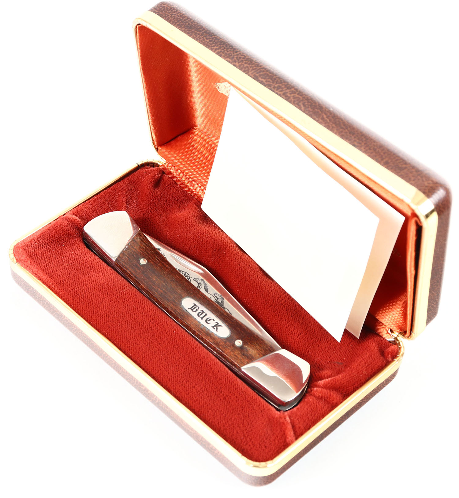 Buck knives Black Mustang folding knife, in presentation case, with certificate, #2812, 3 blade, 2 1/2'' longest blade. Grade: Excellent ++ - Value: 40 to 80