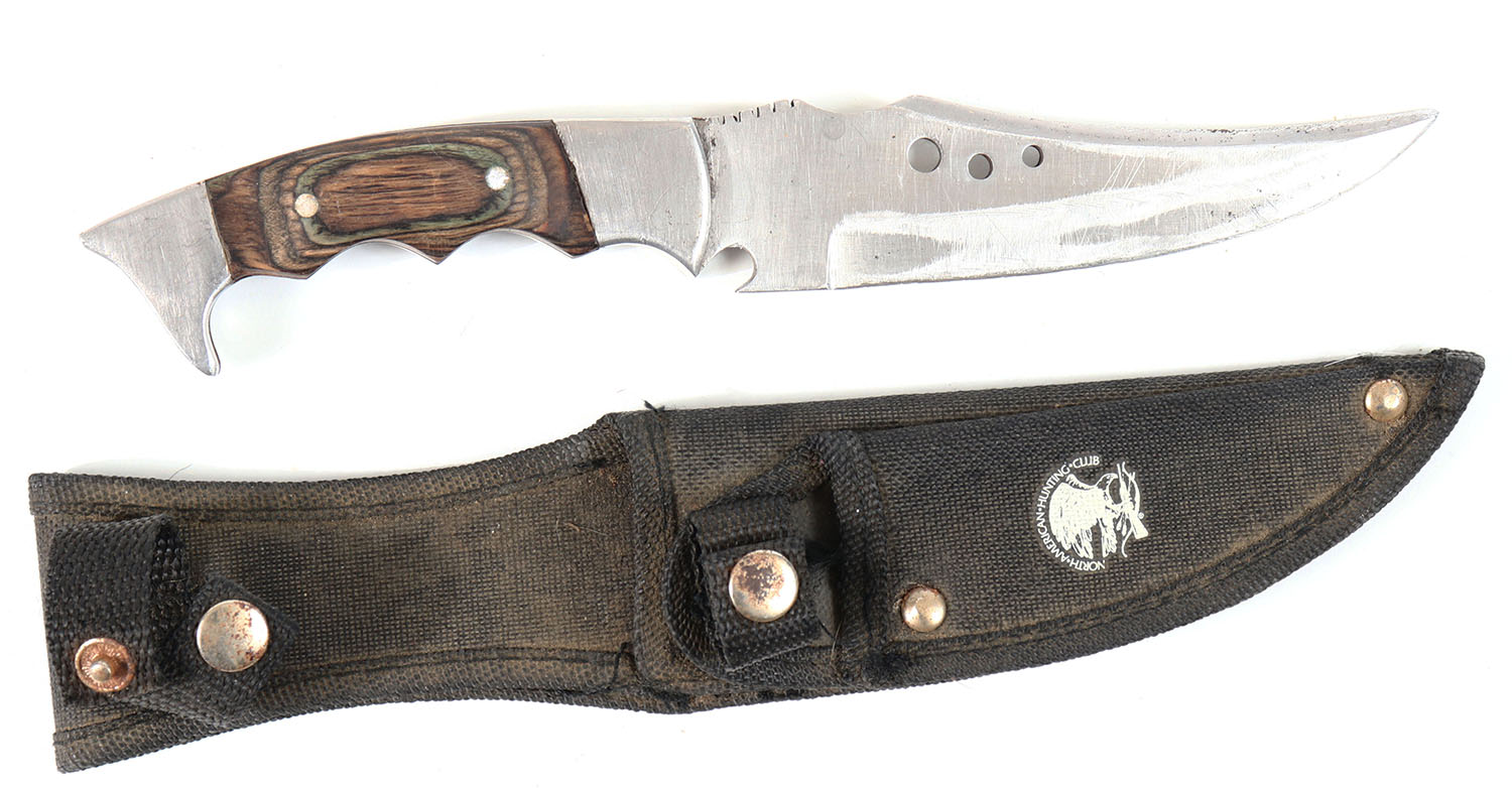 Unmarked knife, 5'' blade, has sheath. Grade: Very Good - Value: 2 to 40