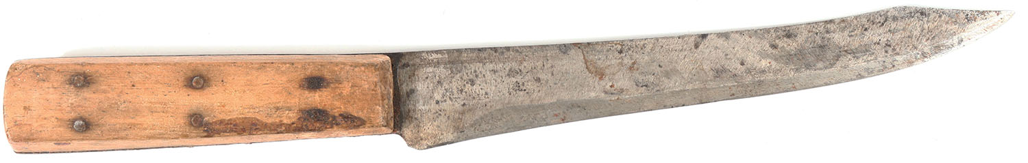 ''Shapleigh Hammer Forged 1843'' 8'' blade, wood handle, has age soiling. Grade: Very Good - Value: 16 to 50